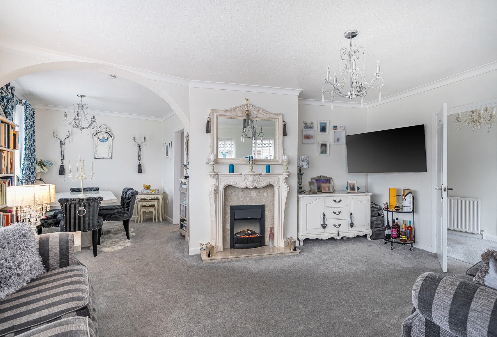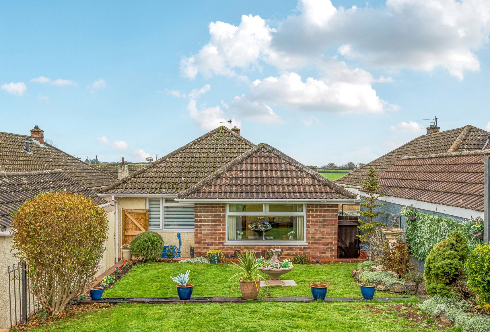 This charming detached bungalow offers comfortable and versatile living in a sought-after area. The property features a driveway with space for multiple vehicles and a front garden with a thoughtfully placed bench to enjoy the surrounding greenery views.