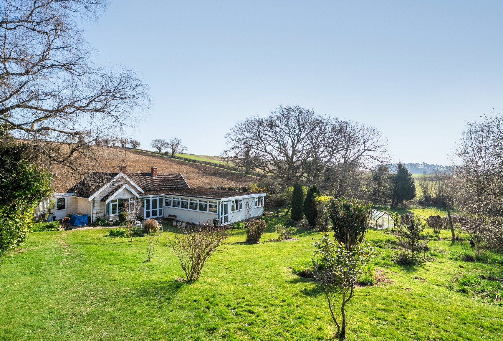 Inside, the cottage currently features four well-proportioned bedrooms, multiple reception rooms, a generous kitchen, and two additional flexible-use rooms. The layout has been thoughtfully designed to take advantage of views across the garden, bringing a sense of connection to the outdoors throughout the home.