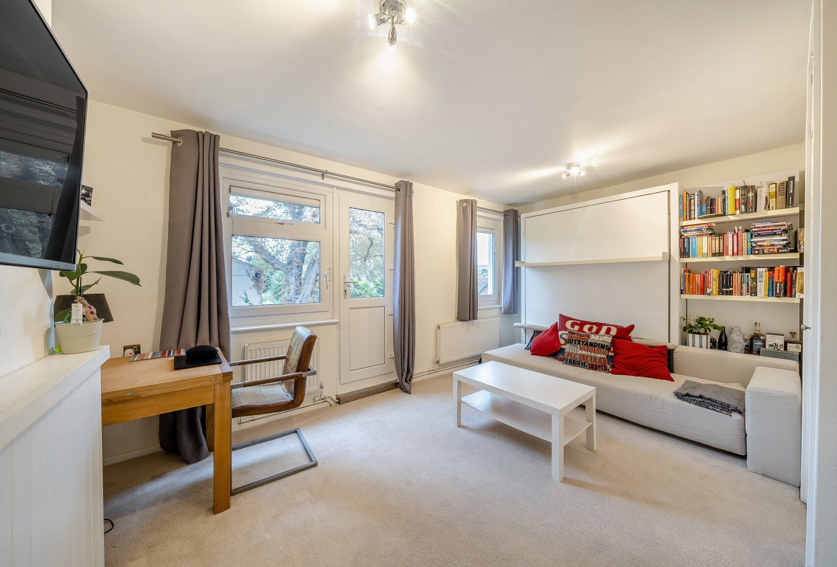 With a South-facing Juliet balcony overlooking a private communal garden the property is bathed in natural light and surrounded by greenery. It is situated on the first floor of a small, purpose-built block that offers a secure and well-maintained environment. This flexible living space benefits from a separate kitchen, ample storage throughout and resident off-road parking permit. The kitchen is separate with a built in cooker, under counter appliances and an additional storage cupboard along with another useful storage cupboard in the hallway.
