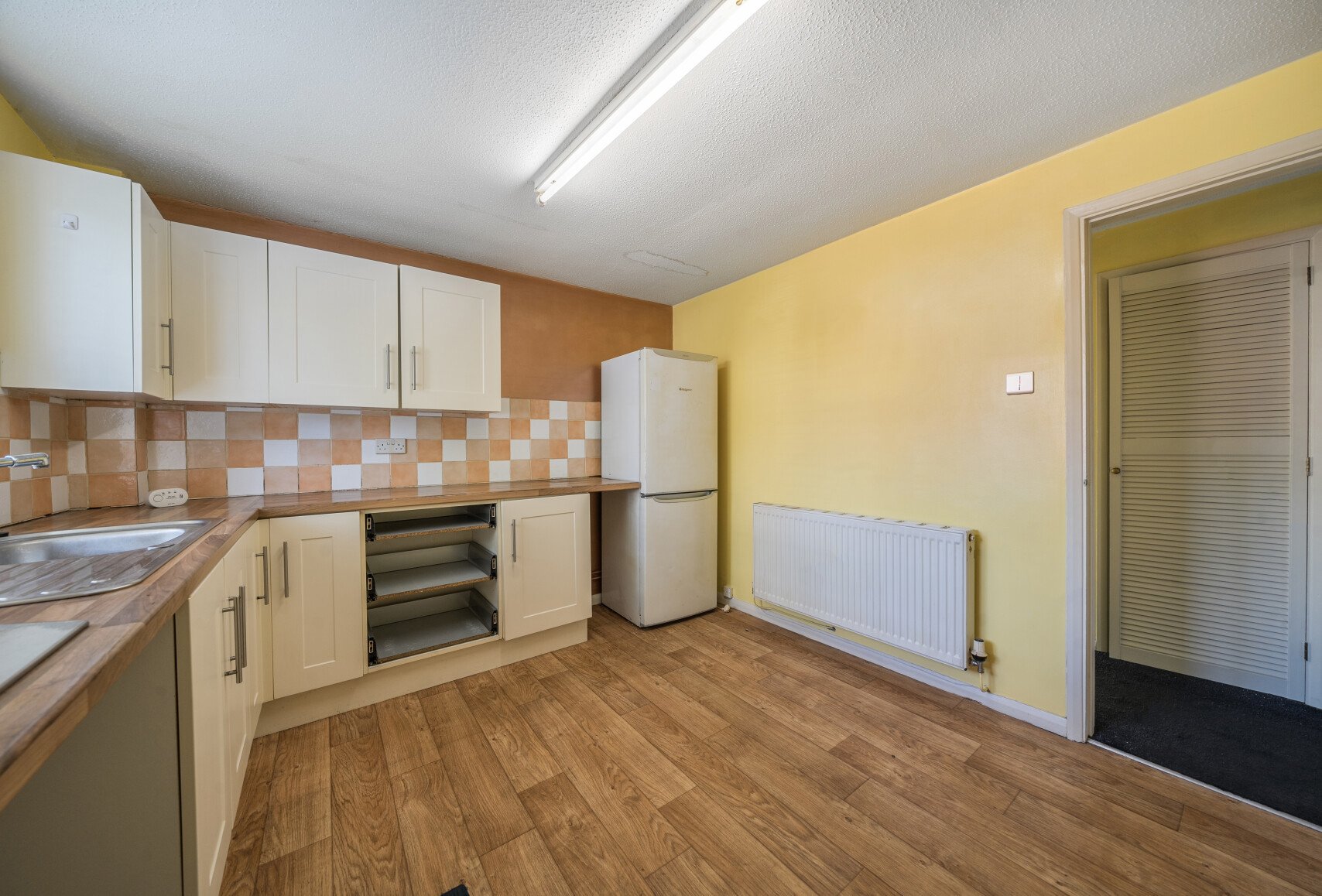 The property features a generous reception room, a double bedroom, a separate kitchen with plenty of potential, and a convenient shower room. The layout is practical and well-proportioned, making it ideal for first-time buyers, downsizers, or investors.