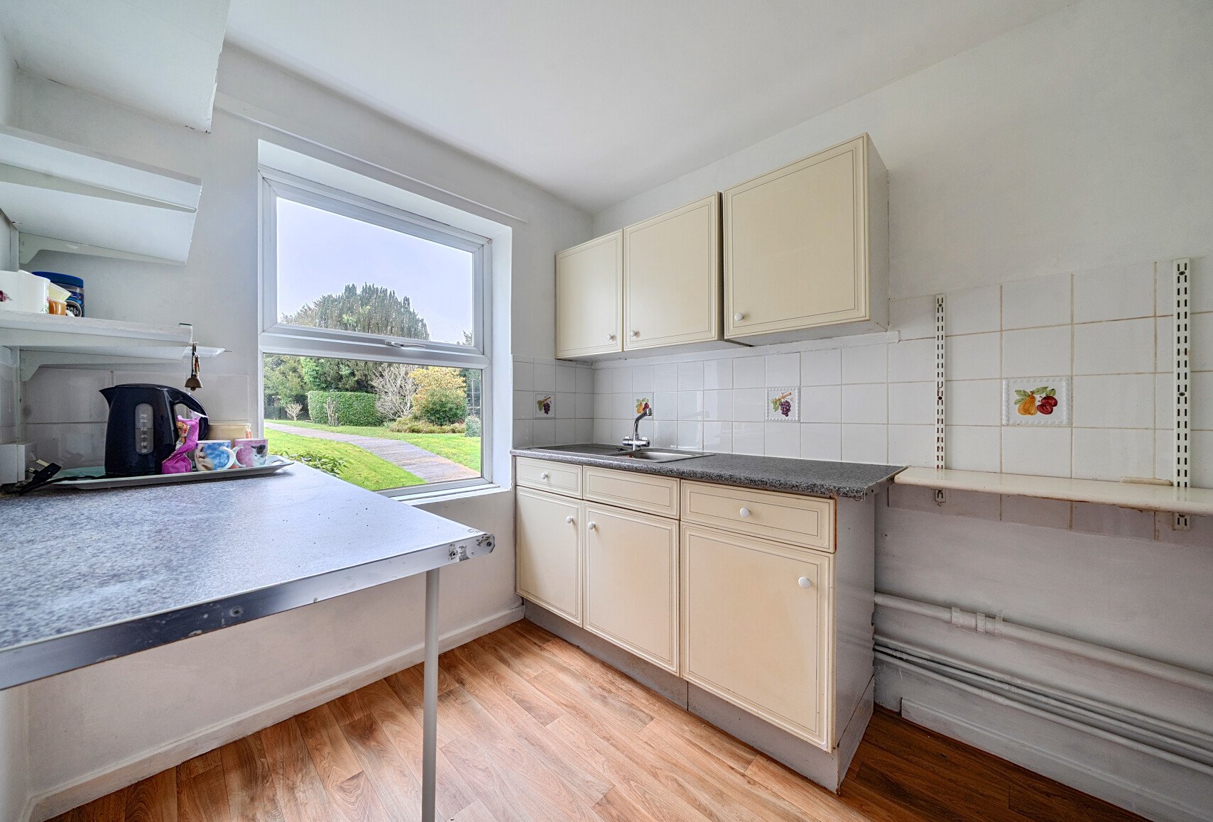 This ground floor apartment is light and airy. The home benefits from lounge/dining room, kitchen with space for washing machine, one bedrooms with a lovely curved bay window, and a built in cupboard. The bathroom has a shower cubicle. There is also a communal residents lounge, laundry room, cloakroom and communal parking on-site (on a first come first served basis) together with attractive gardens.