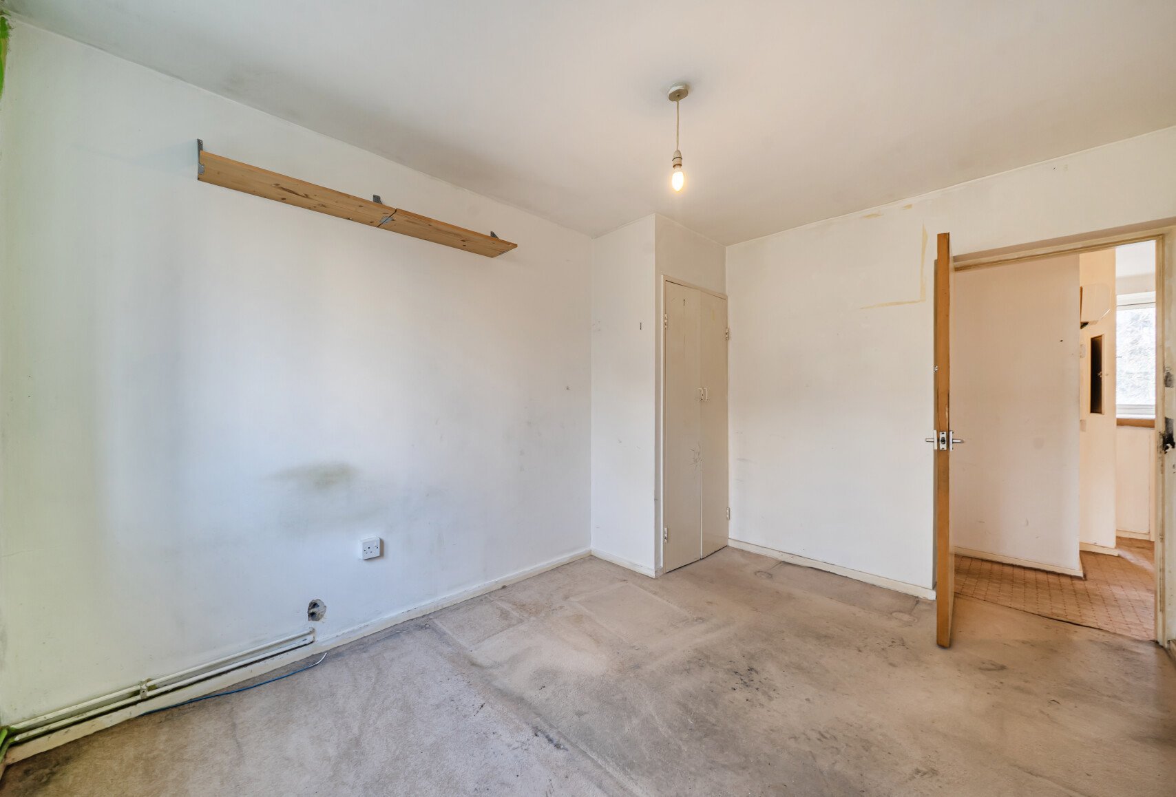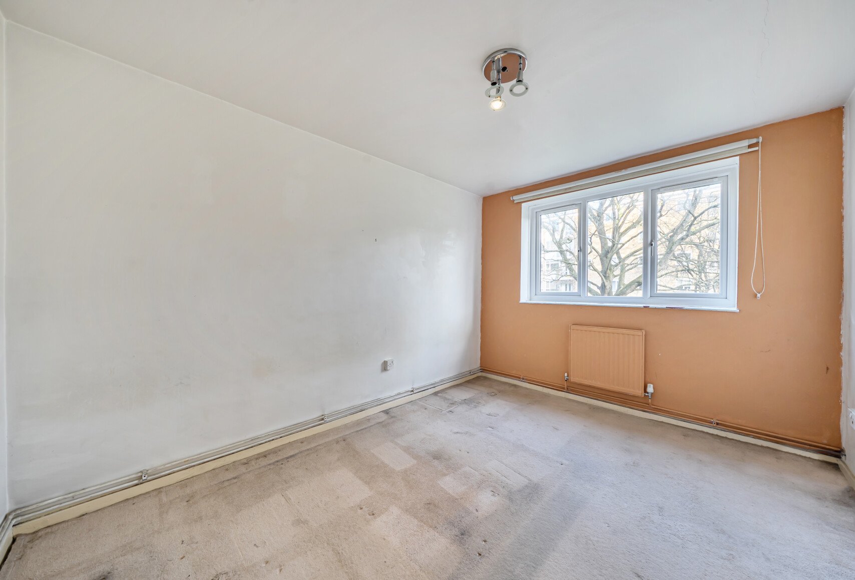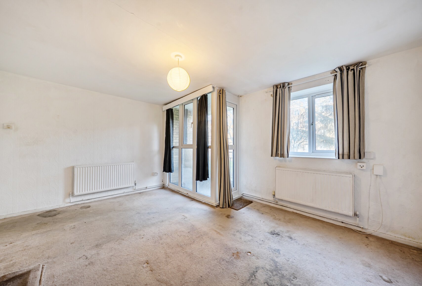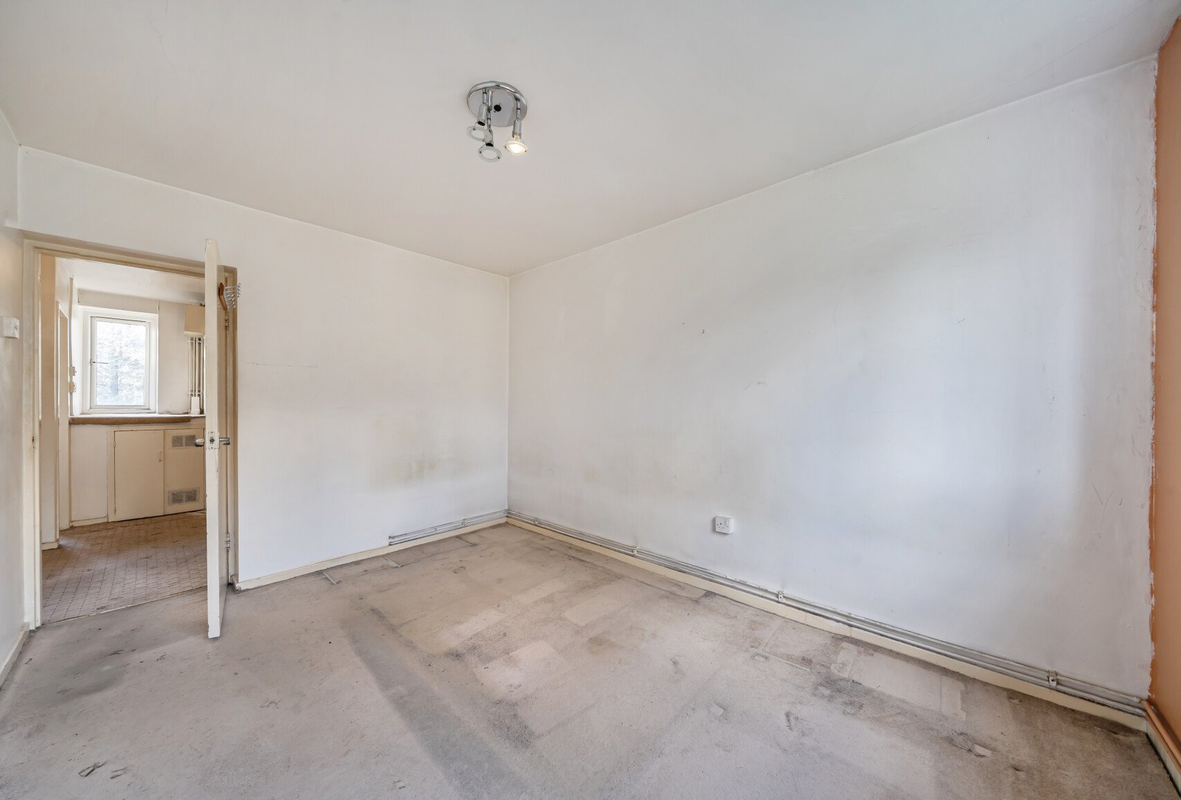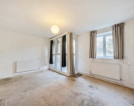 The property offers approximately 761 sq ft of internal accommodation and presents an excellent opportunity for buyers looking to modernise and add value. The layout comprises a separate living room with access to a private balcony, a separate kitchen, three bedrooms, and a bathroom. While the flat requires comprehensive refurbishment, the generous proportions provide strong scope to redesign and enhance the space to suit individual needs.