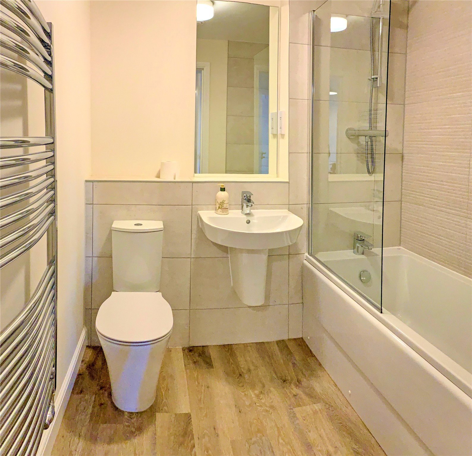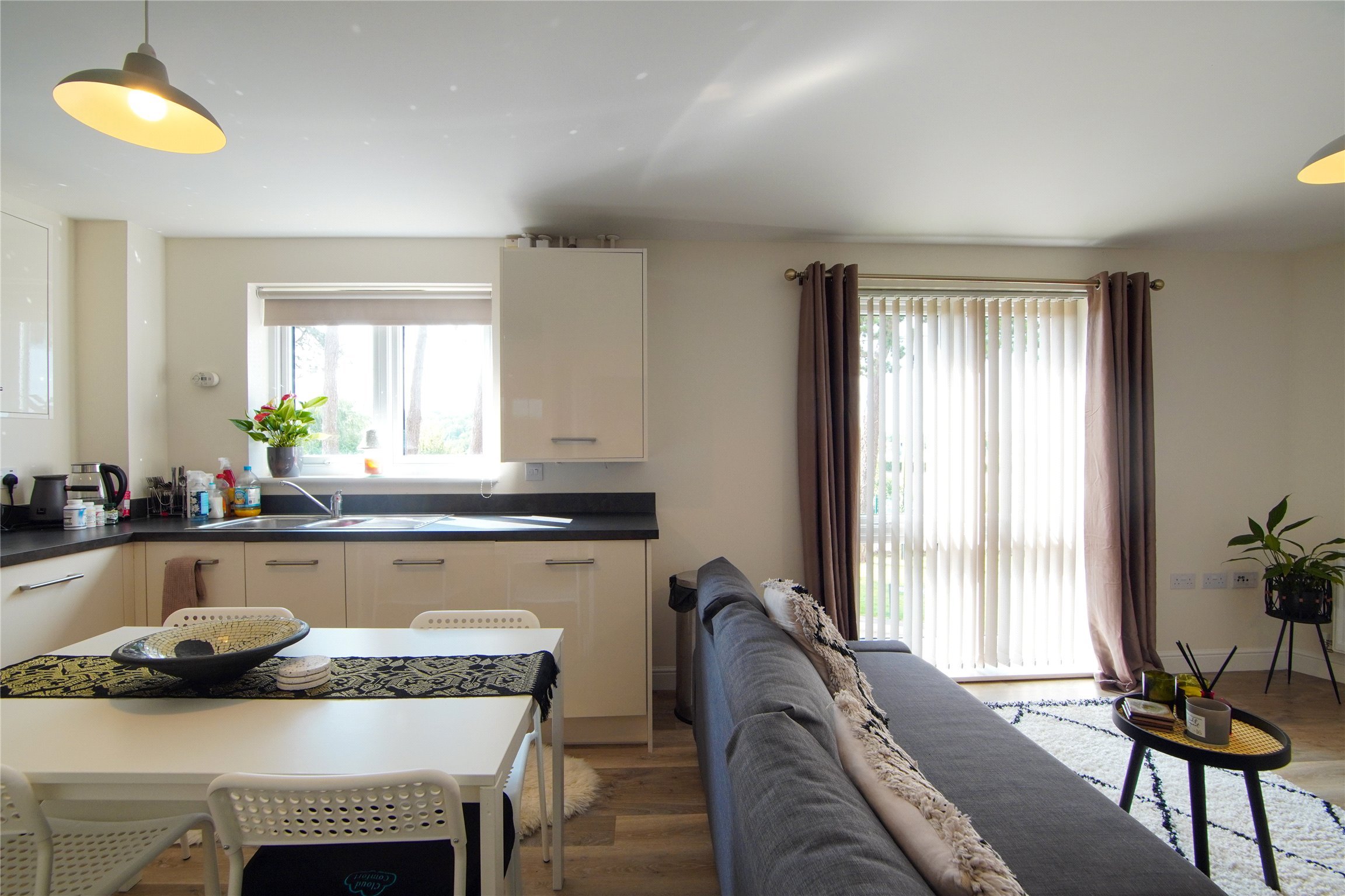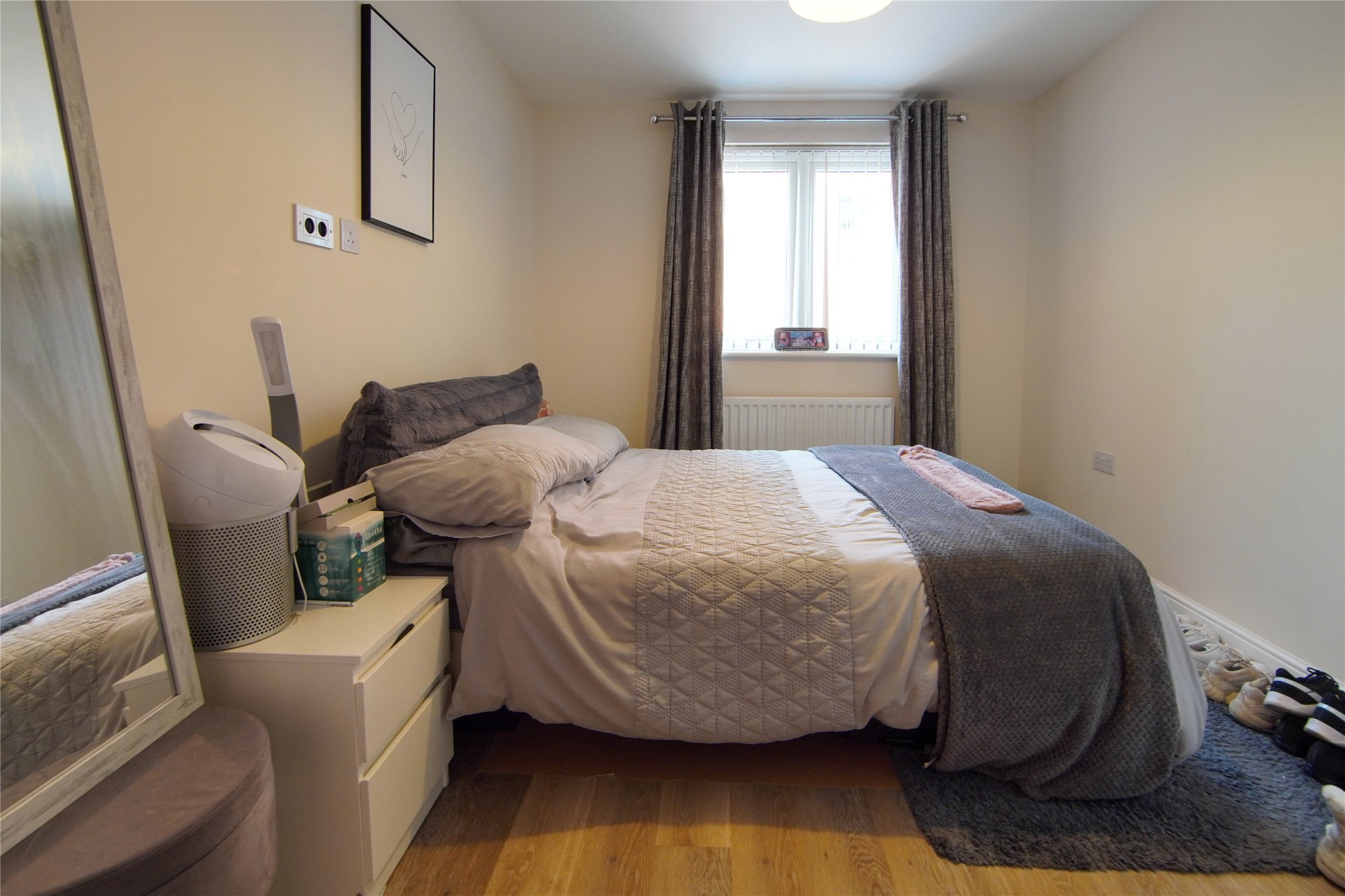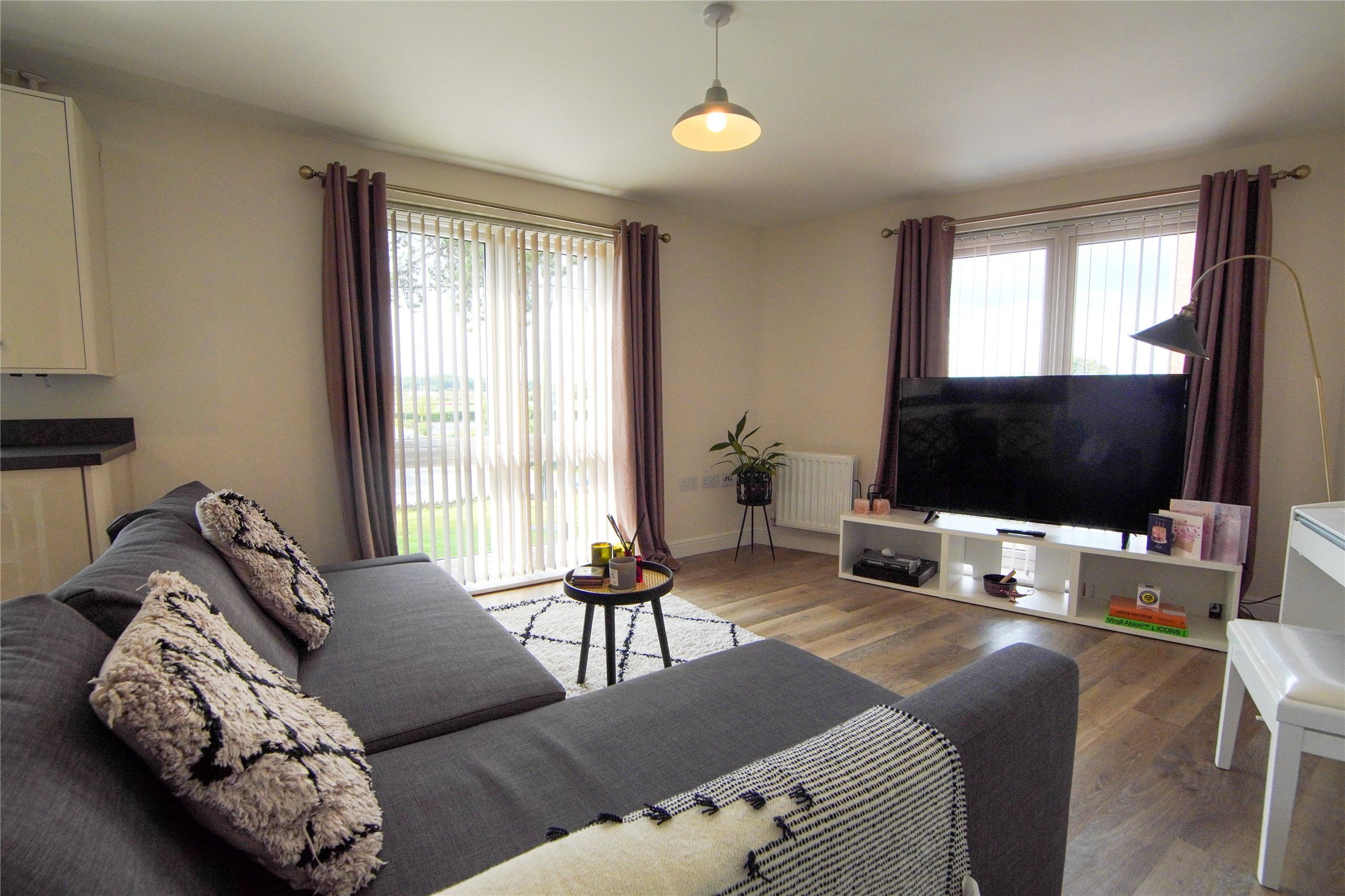 The accommodation comprises; an entrance hall with two storage cupboards, open plan living area with dual aspect windows, double bedroom with built in wardrobes and bathroom with an over bath shower system.