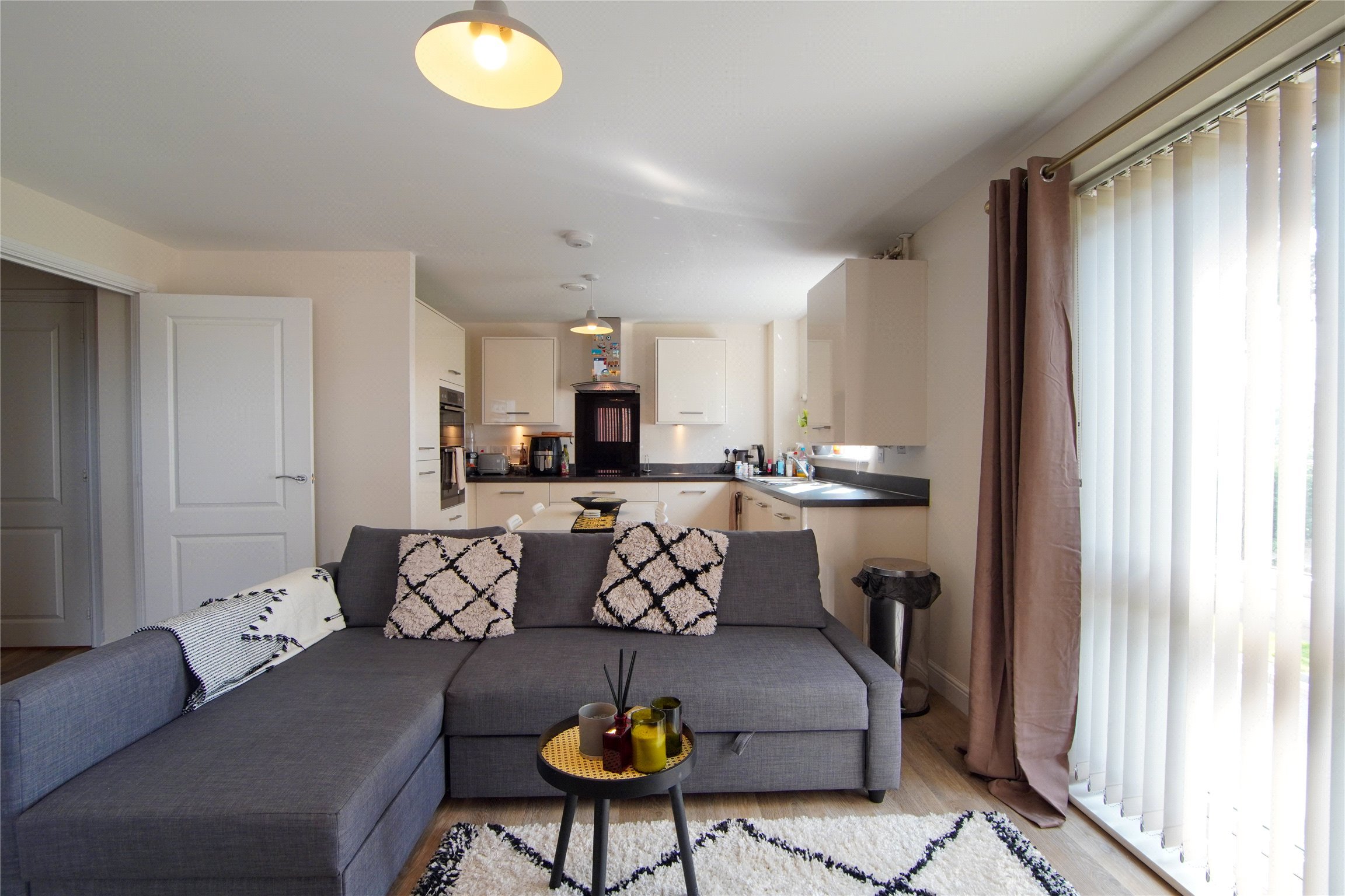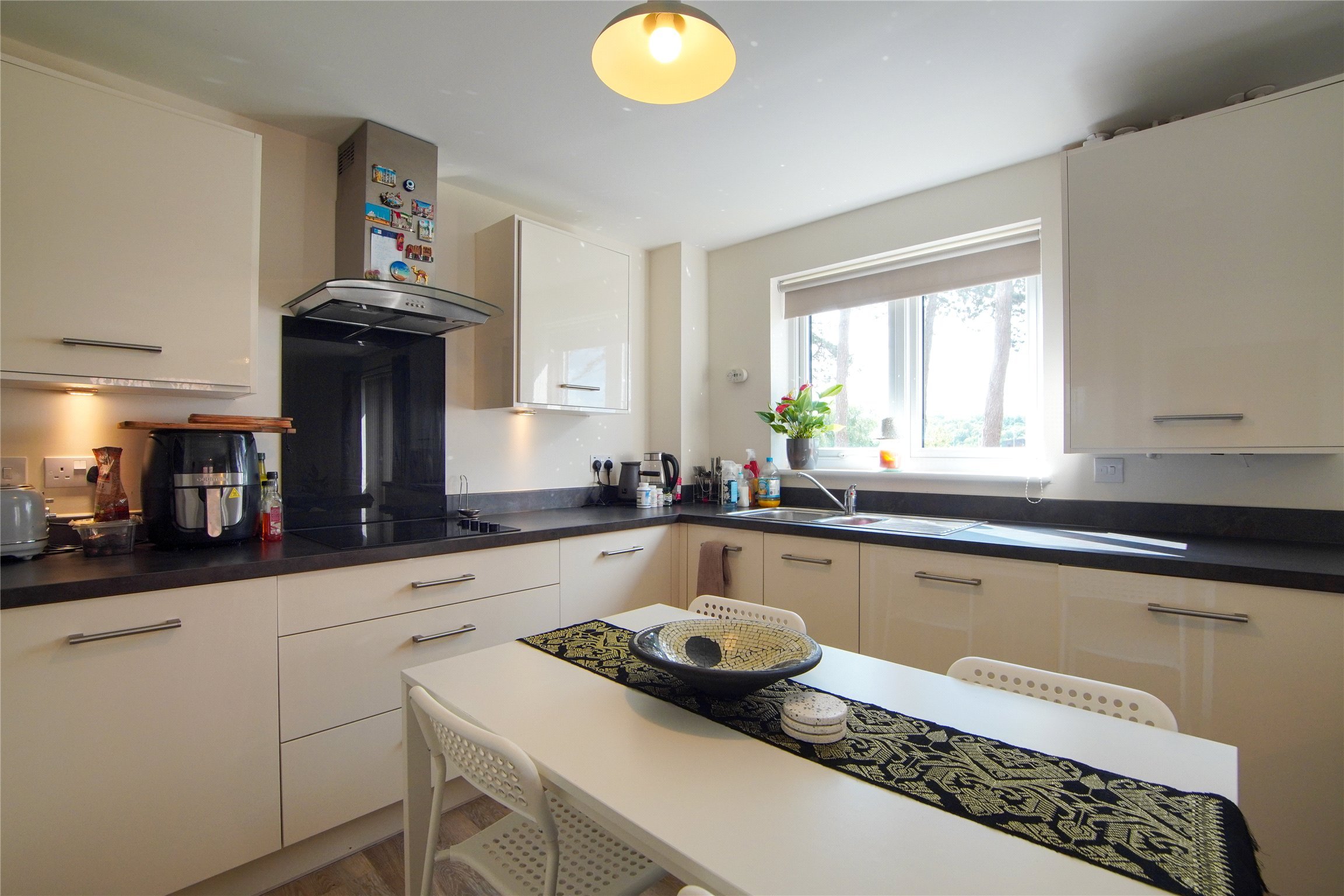 The kitchen is fitted with cream coloured high gloss units which incorporate a double electric oven, induction hob, fridge freezer and dishwasher. It is complete with allocated parking space. Viewings highly recommended. Leasehold status.