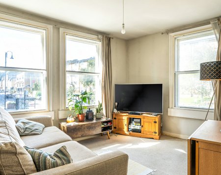 The whole flat benefits from classically proportioned Georgian windows flooding the property with light. Secondary glazing is in place.