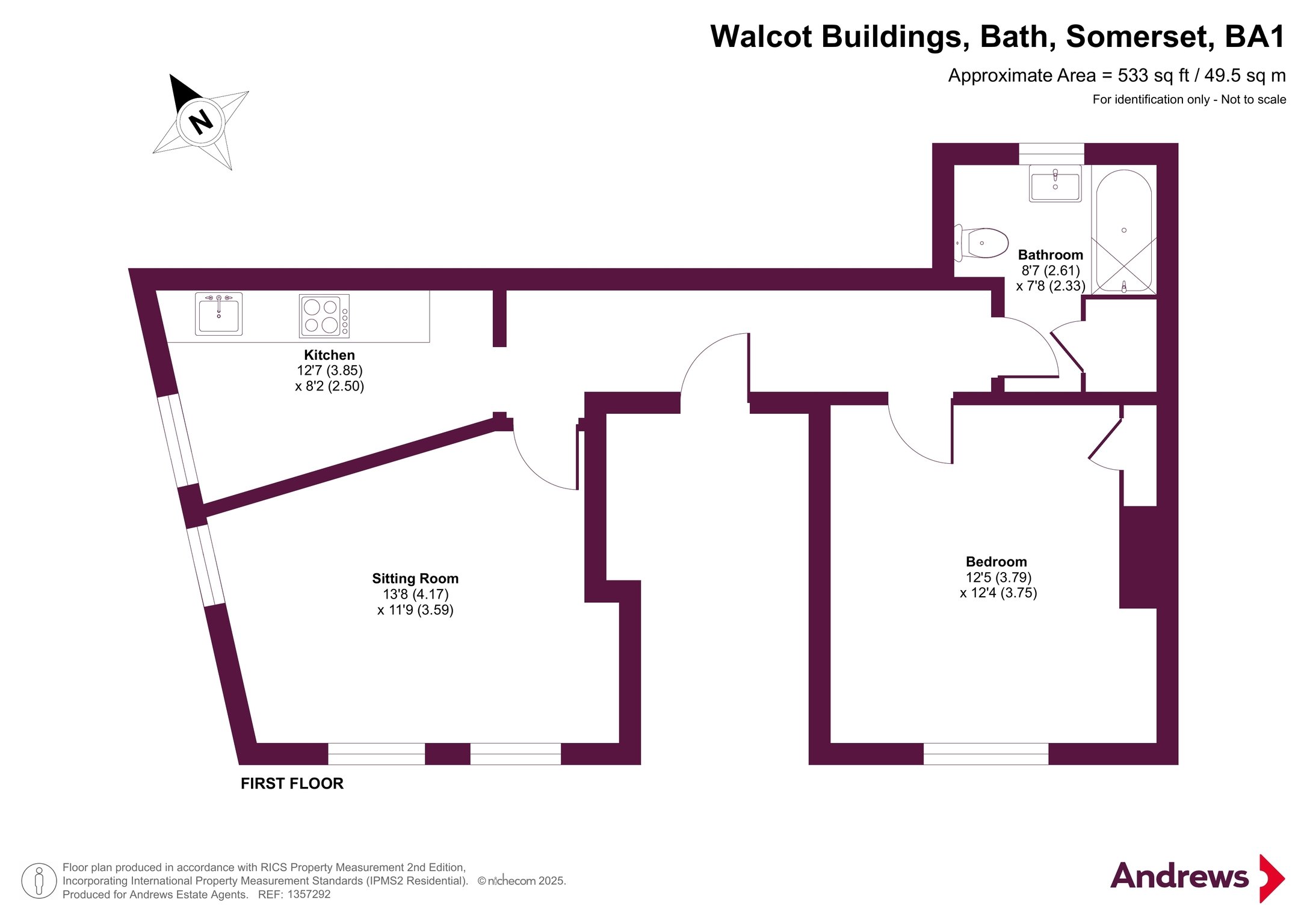This centrally located Georgian first-floor flat in Walcot offers an excellent opportunity as an investment, first-time purchase or convenient city base. Accessed via a door on Weymouth Street into a communal entrance hall and staircase, the flat’s layout is arranged off a central hallway. To the right are the double bedroom and bathroom; to the left, the kitchen and sitting room. There is a storage cupboard in the hall. The double bedroom includes a feature fireplace, fitted cupboard, and a window overlooking Weymouth Street. The bathroom is fitted with a bath and shower over, WC and basin. At the front of the building, the corner-set sitting room benefits from a dual aspect and the high ceilings typical of Georgian architecture. The kitchen provides floor-mounted units with shelving above, an electric cooker and a recycling fan. The whole flat benefits from classically proportioned Georgian windows flooding the property with light. Secondary glazing is in place. Walcot is renowned for its vibrant community feel, with an array of independent shops and cafés, and the building is ideally placed for easy access to Bath city centre.