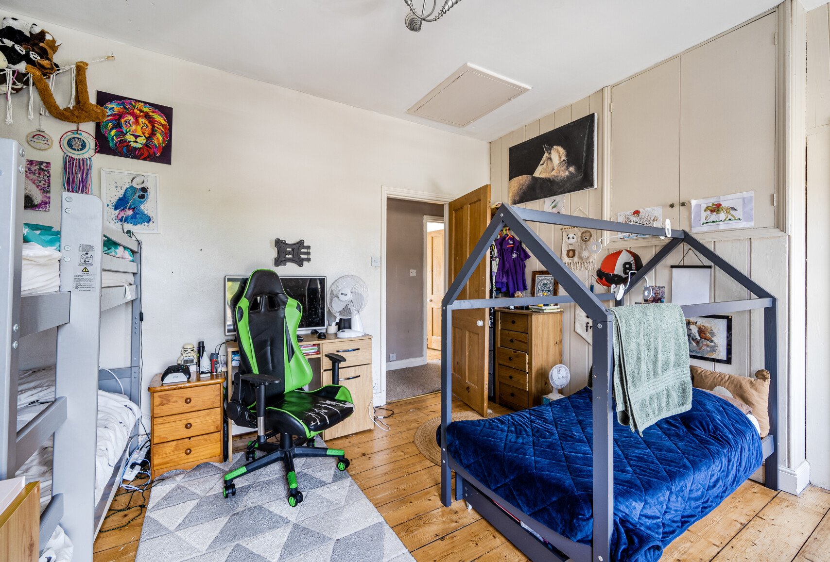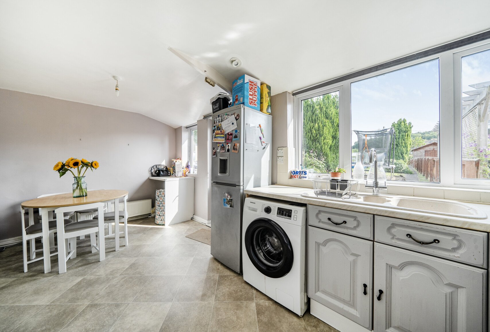 Offering deceptively spacious accommodation, this property begins with an entrance hall featuring stairs to the first floor and a door leading into an open-plan sitting/dining room. The dining area is positioned at the front of the property and could alternatively serve as a home office or playroom, as there is also a separate kitchen/dining room. The kitchen/dining room includes a range of fitted units with worktops, along with a built-in oven and hob, and door leading out to the rear. Upstairs, there are two double bedrooms. The main bedroom is located at the front and benefits from a built-in wardrobe. A white suite bathroom completes the first floor.