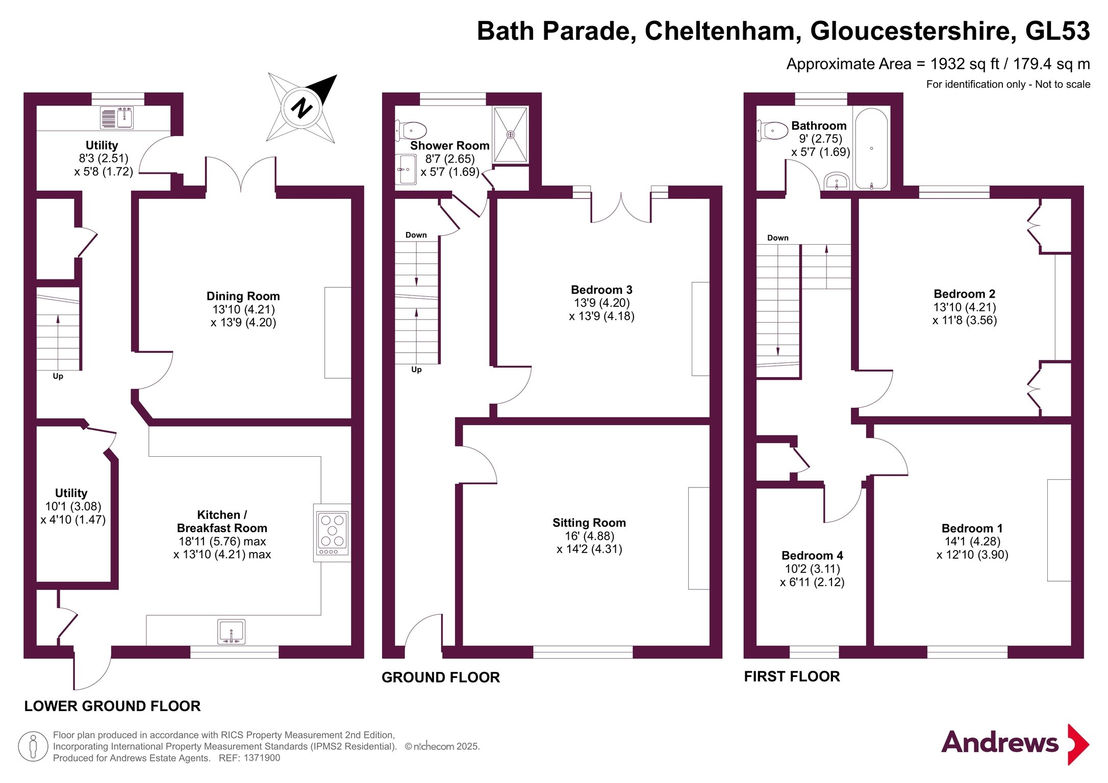 The lower ground floor includes a well-equipped kitchen with tiled flooring, a range-style cooker, and space for casual dining. A versatile room nearby serves as a guest bedroom, snug, or additional reception space. A separate utility room keeps chores out of sight, and two vaulted storage areas offer ideal space for wine, pantry items, or general use. Upstairs, the drawing room is bright and welcoming, with high ceilings and a statement fireplace. The adjoining dining room is perfect for entertaining, and a shower room adds convenience to this level. The top floor features three bedrooms: a spacious principal room, a light-filled second bedroom, and a third that works well as an office, nursery, or extra sleeping space. A stylish family bathroom completes the layout with a blend of traditional charm and modern fittings. Outside, the private rear garden offers a peaceful retreat with mature planting, a lawn, and a patio ideal for outdoor dining. A garden shed provides useful storage.