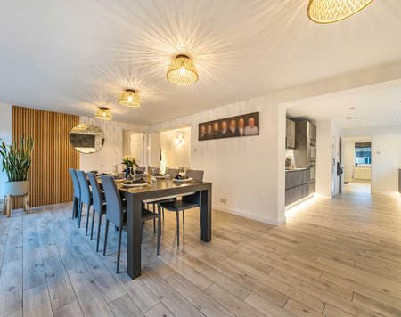 From the moment you arrive, the property impresses with its generous driveway providing ample parking and smart, contemporary façade. Inside, the ground floor is beautifully arranged to combine luxury with functionality. The spacious lounge provides a warm and welcoming space for family relaxation, while the impressive open-plan kitchen/diner forms the true heart of the home, a stylish setting for entertaining and everyday living alike.