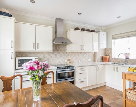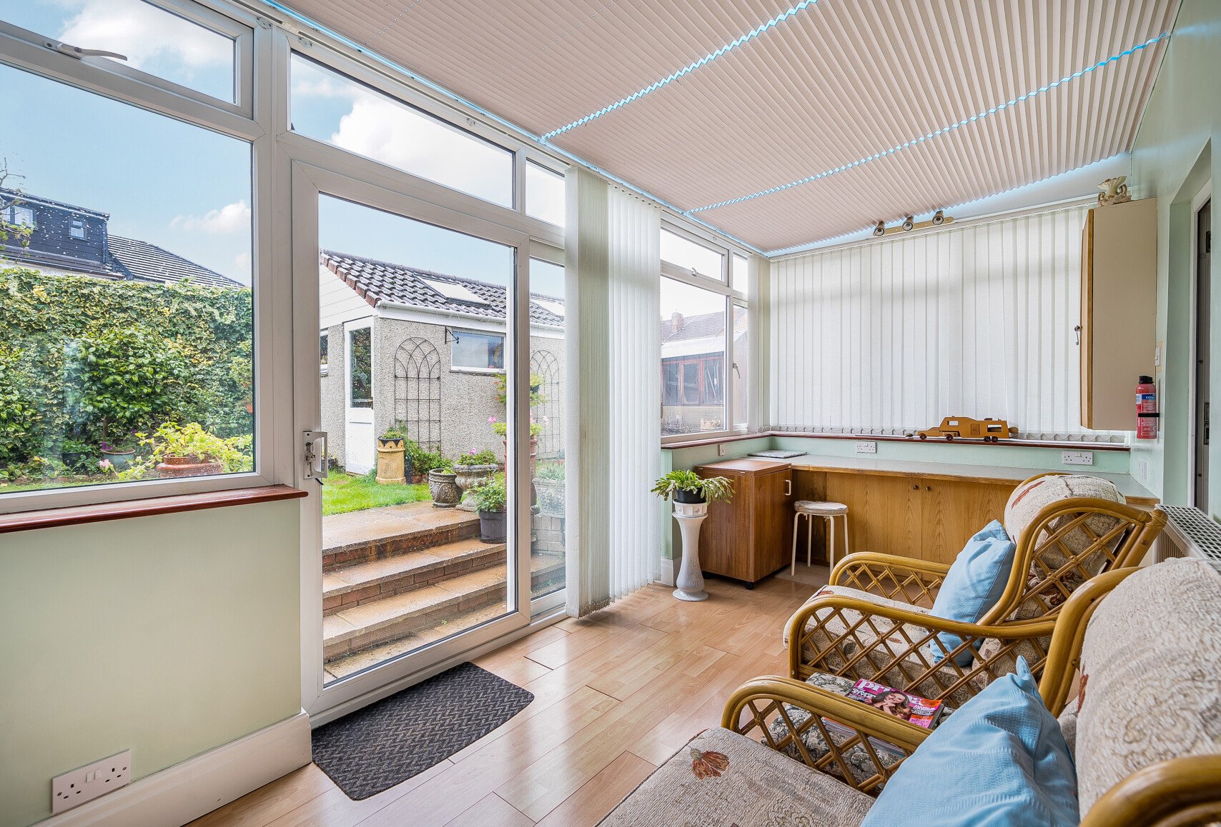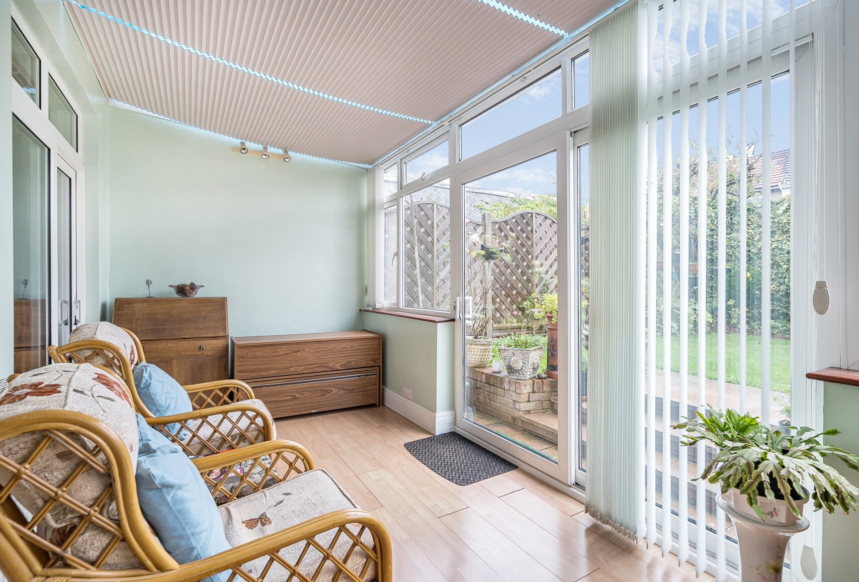 This flows seamlessly into a conservatory at the rear, which connects to the well-proportioned L-shaped kitchen and dining area. Completing the ground floor is a useful downstairs W.C.