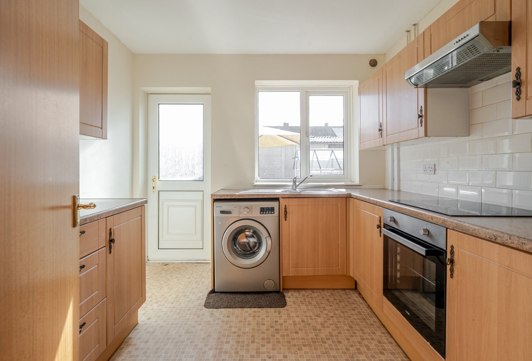 The spacious entrance hallway leads to a generous lounge/diner, ideal for relaxing or entertaining. To the rear, the kitchen enjoys views of the garden and provides direct access outside.