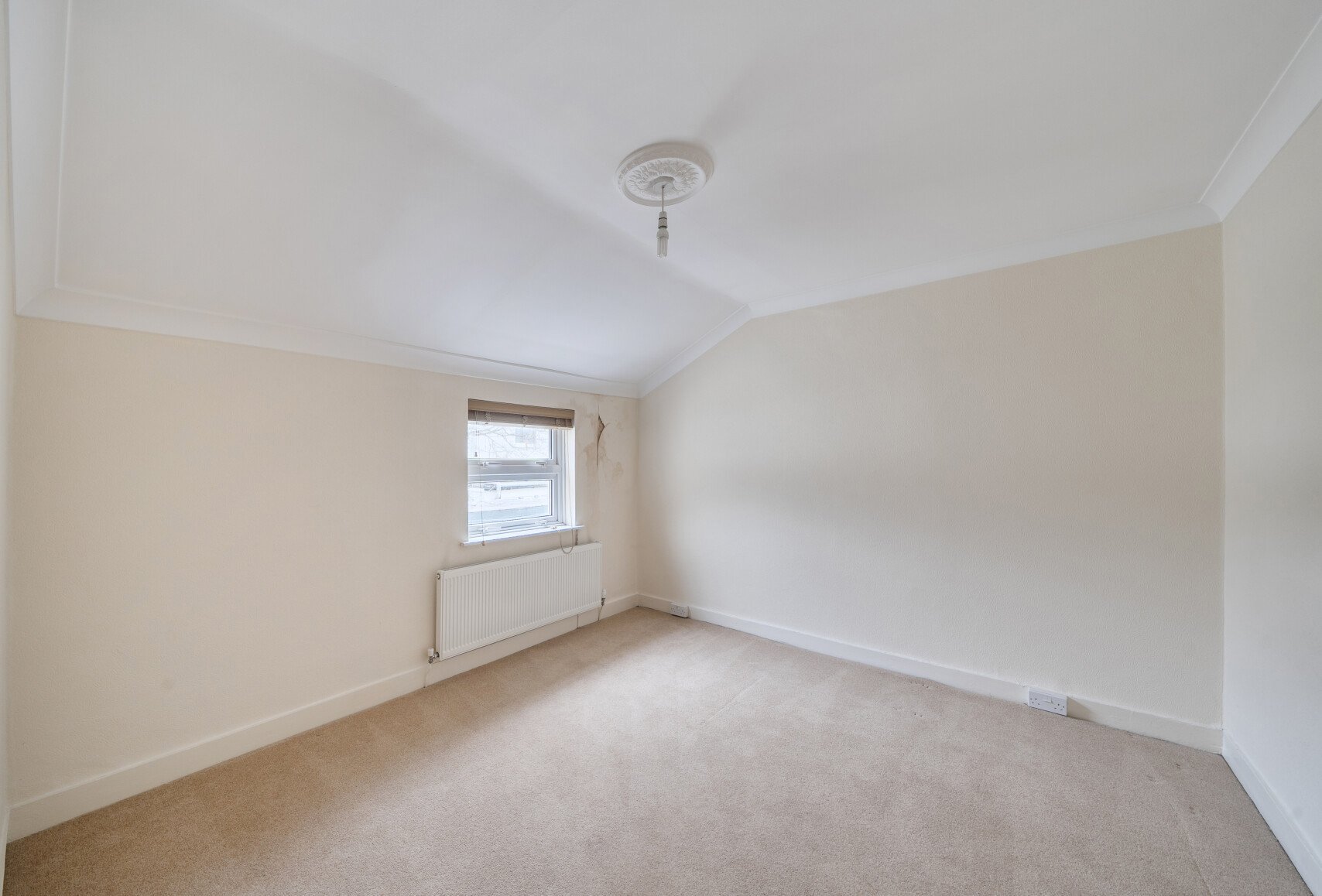 Upstairs, the primary bedroom boasts an impressive 14'9 x 11'7 footprint with two windows flooding the room with natural light, along with built in cupboard space. The second bedroom over looks the garden. Completing the first floor is the family bathroom, fitted with a white three piece suite including WC, wash hand basin, and a walk in shower.