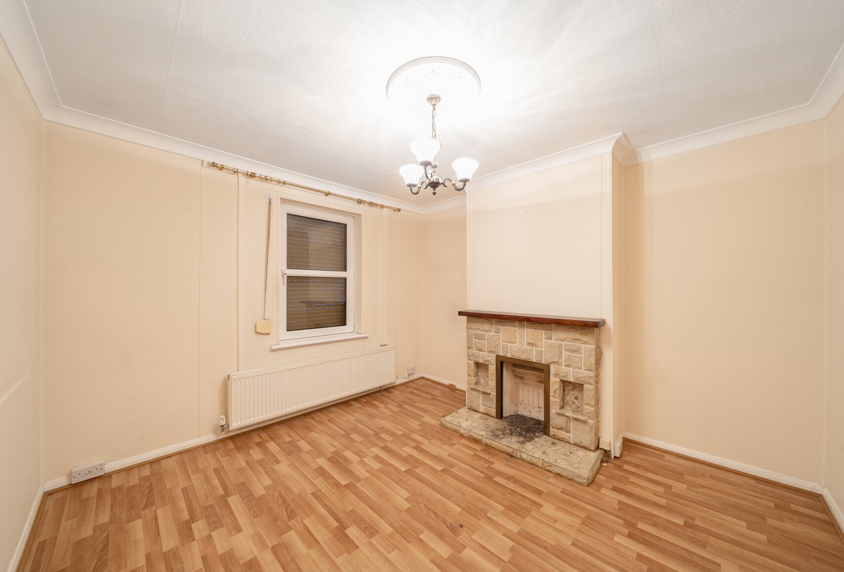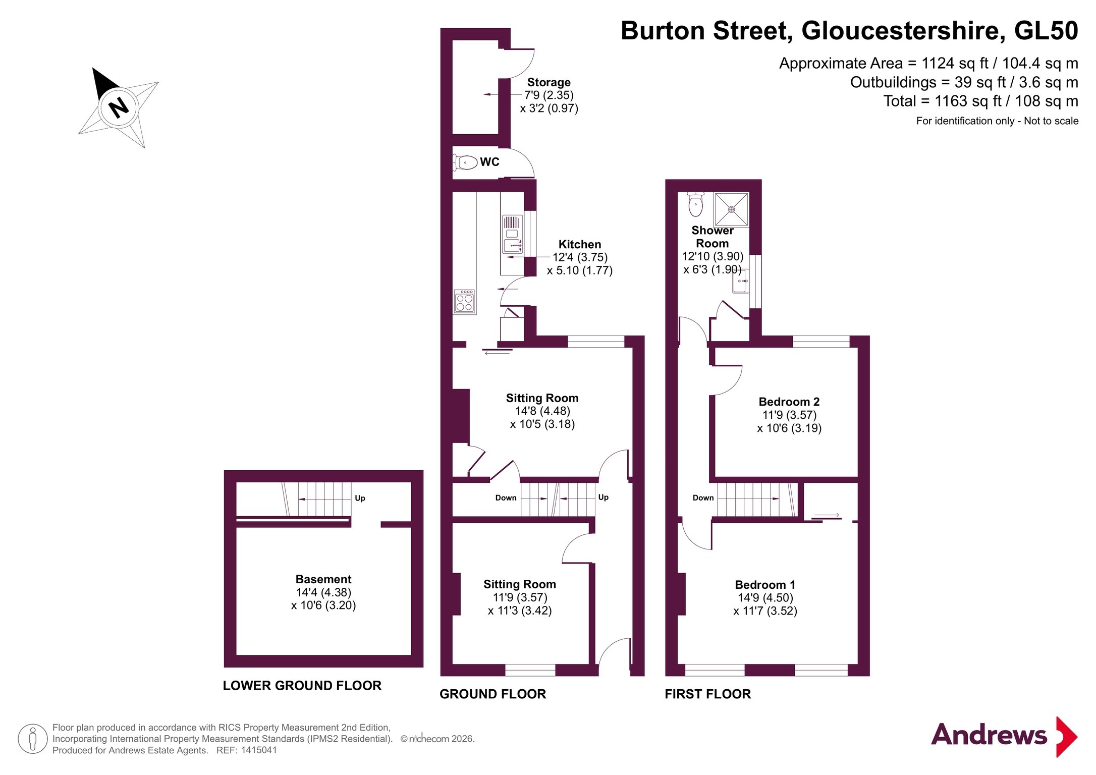 The property briefly comprises an entrance hall, an 11'9 x 11'3 living room featuring continental shutters and a character fireplace with brick surround and hearth. The dining room sits adjacent to the living room and includes a second feature fireplace. From here, a door leads down to the cellar/storage room, ideal for additional storage. To the rear, the kitchen opens out to the patio and is fitted with wall, base and drawer units, a single basin, and space for appliances. Upstairs, the primary bedroom boasts an impressive 14'9 x 11'7 footprint with two windows flooding the room with natural light, along with built in cupboard space. The second bedroom over looks the garden. Completing the first floor is the family bathroom, fitted with a white three piece suite including WC, wash hand basin, and a walk in shower.