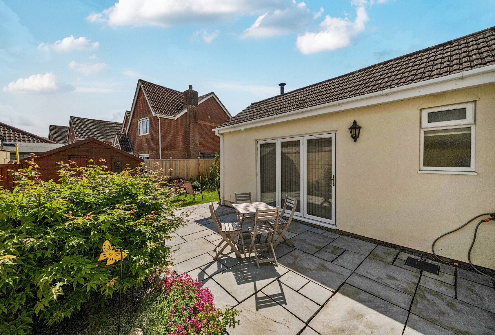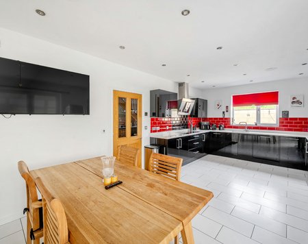 Offer impressive, versatile accommodation, this extended spacious bungalow sits on a generous, enclosed plot. Starting at the front, an entrance porch with an oak-effect door opens into a large hallway - an impressive space that could also serve as a study or reading area, complete with beautifully laid wood flooring. Off the hallway, you'll find a hobby room/study, a cloakroom, and a superb dual-aspect lounge with doors at either end leading to different areas of the garden, as well as a charming wood burner fireplace. The kitchen/diner features a stylish range of black high-gloss units with complementary tiled splashbacks and worktops, along with French doors that lead into a generously sized conservatory. The main bedroom, located on the ground floor, is another standout feature - generously sized with fitted wardrobes and French doors opening out to the garden. The stunning four-piece ensuite includes a raised Jacuzzi bath and a double-width walk-in shower cubicle. Upstairs, there are two double bedrooms, both with fitted wardrobes, and a modern shower room.