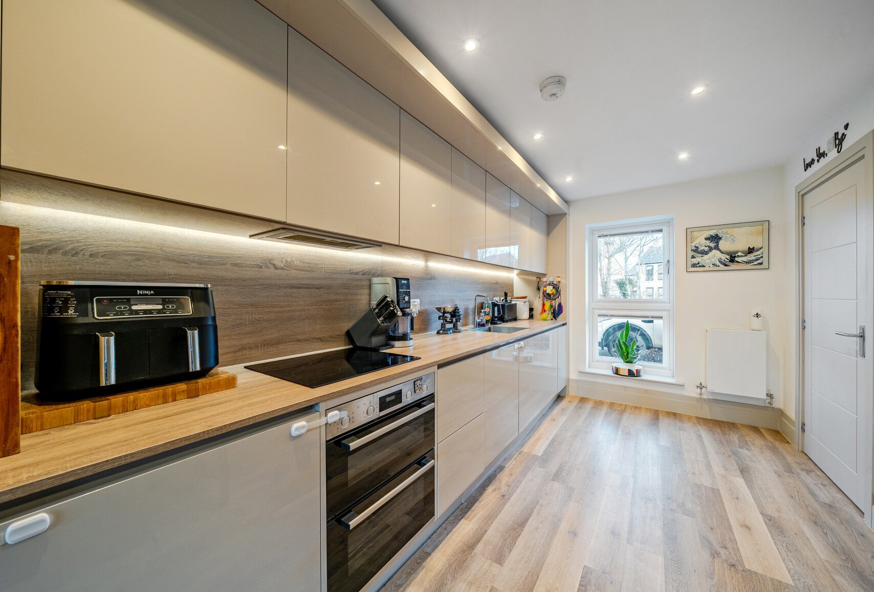 The property is fully electric with an air source heat pump and benefits from an integrated EV charging point.