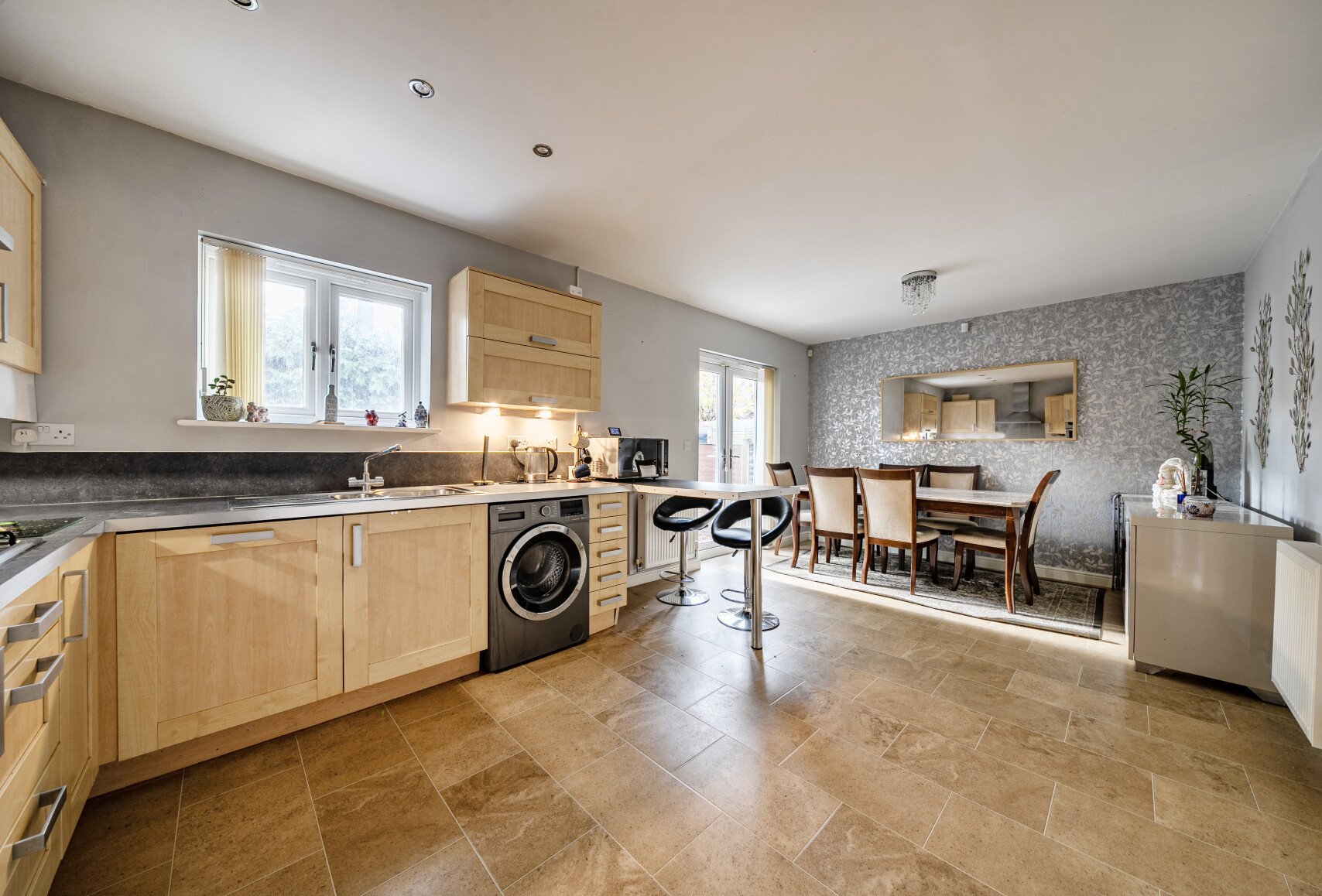 Tucked away in a quiet cul-de-sac, this beautifully presented detached home offers spacious, contemporary living throughout. Step inside to a welcoming entrance hall leading to a convenient downstairs cloakroom/WC and a bright, generously sized lounge ideal for relaxing or entertaining guests. At the heart of the home lies a stylish kitchen/dining room, complete with integrated appliances and plenty of space for family meals or social gatherings. Upstairs, you’ll find four well proportioned bedrooms, including a main bedroom with its own en-suite, and a sleek, modern family shower room. Outside, the property enjoys a private, low-maintenance southerly facing garden perfect for outdoor dining or unwinding in the sun, while a driveway to the front provides off road parking for two vehicles.