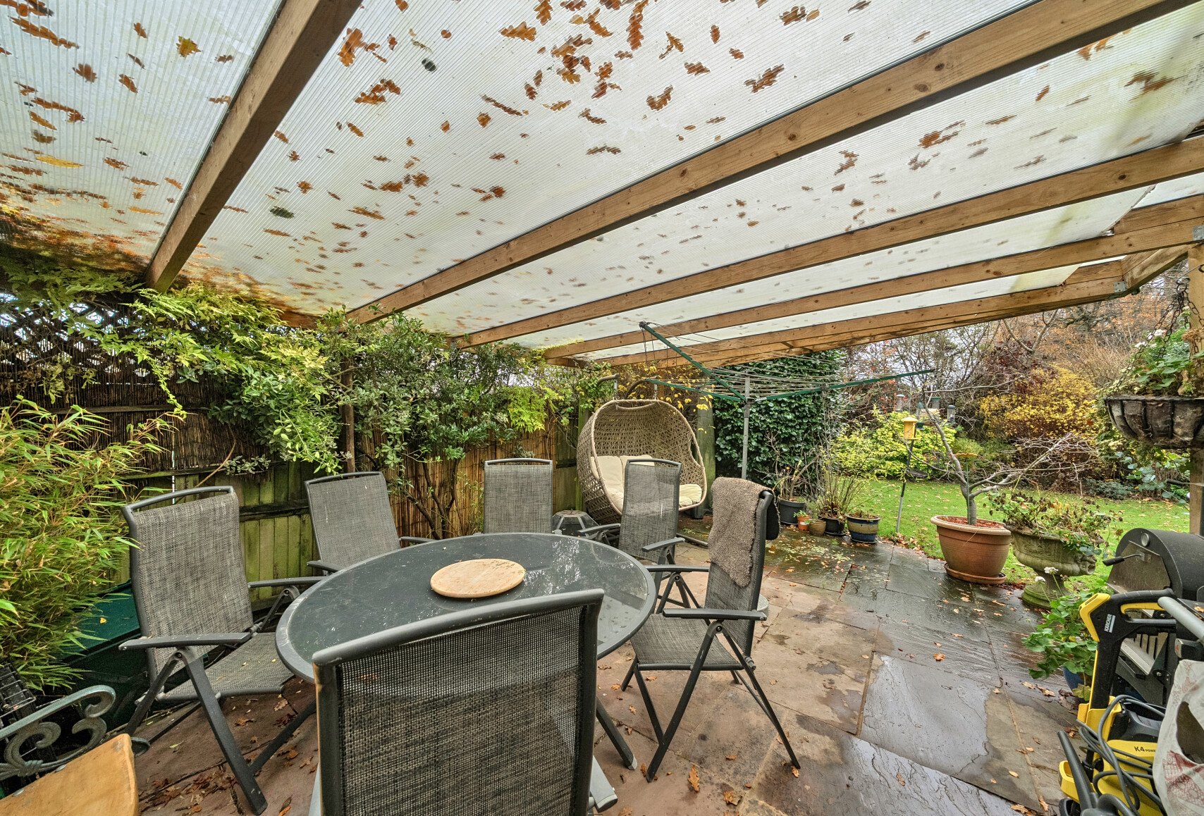A detached two-storey residence offering approximately 1,474 sq ft of internal accommodation, plus an attached 414 sq ft garage and a spacious carport. The property is positioned on a mature plot with established front and rear gardens. The ground floor comprises an entrance hall with staircase access to the first floor and a ground-floor WC. There is a front facing study/bedroom 4. The sitting room spans the depth of the property and provides direct access to the rear garden via wide glazed doors. Adjacent is a dual-purpose snug/dining room. The kitchen is centrally located with fitted cabinetry, work surfaces, integrated appliances, and access to the utility room, which in turn opens into the attached single garage. The utility also provides an additional external door to the side. The first floor accommodates three bedrooms. Bedroom 1 and Bedroom 2 are positioned at the rear of the property, overlooking the rear garden, while Bedroom 3 is at the front of the property. A centrally located bathroom with over head shower,serves the first-floor accommodation. The front of the property includes a driveway providing parking and access to both the garage and the carport. The rear garden is enclosed and landscaped with lawn, planting areas, and a covered patio structure adjoining the house.
