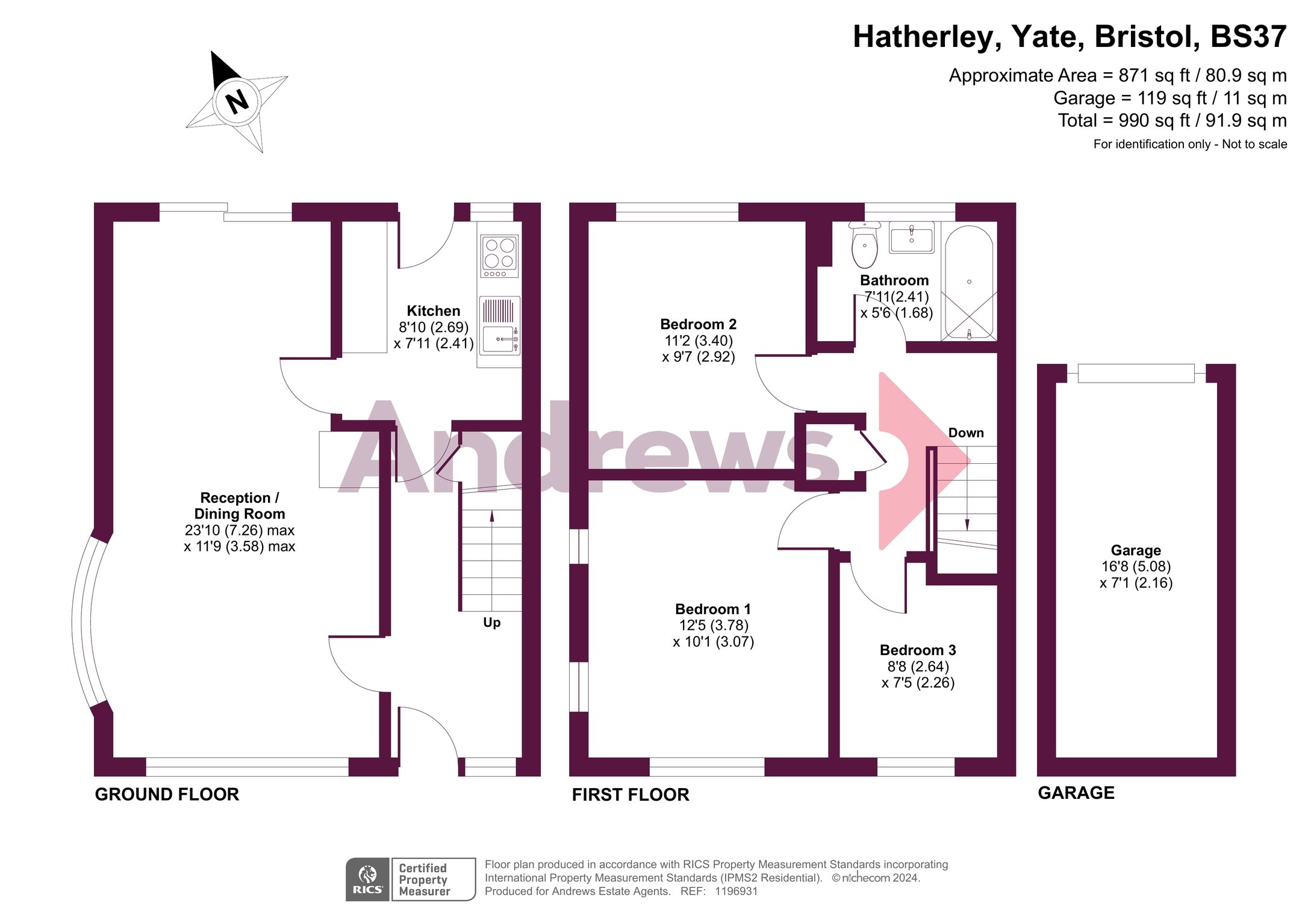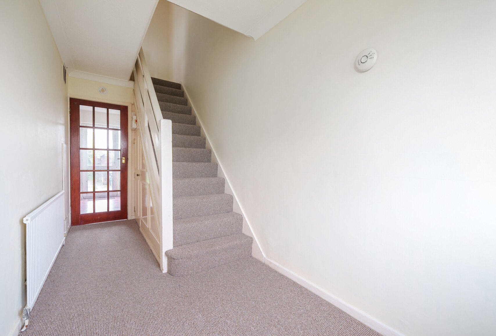 This three bedroom end of terrace house has a lovely outlook to the front and side, with a bay window overlooking the green. The property has a garage situated in a block and is in need of updating. The layout comprises entrance hall with under stairs cupboard, open plan dual aspect lounge / diner with patio doors to the rear, kitchen with door to the garden. Three bedrooms on the first floor, family bathroom, airing cupboard and loft access. At the rear of the house is an enclosed garden with seating area and lawn, the rear gate then leads down to the garage situated in a block.