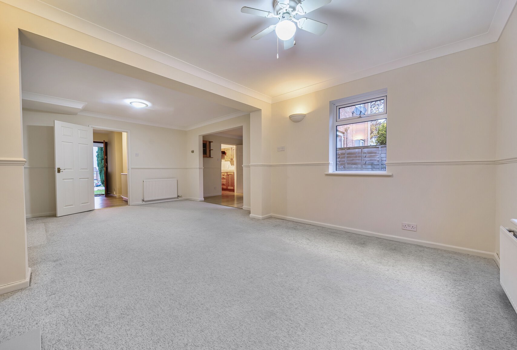 Upstairs, there are two spacious double bedrooms and a third single bedroom, complemented by a modern family bathroom with a shower over the bath—updated within the past year.