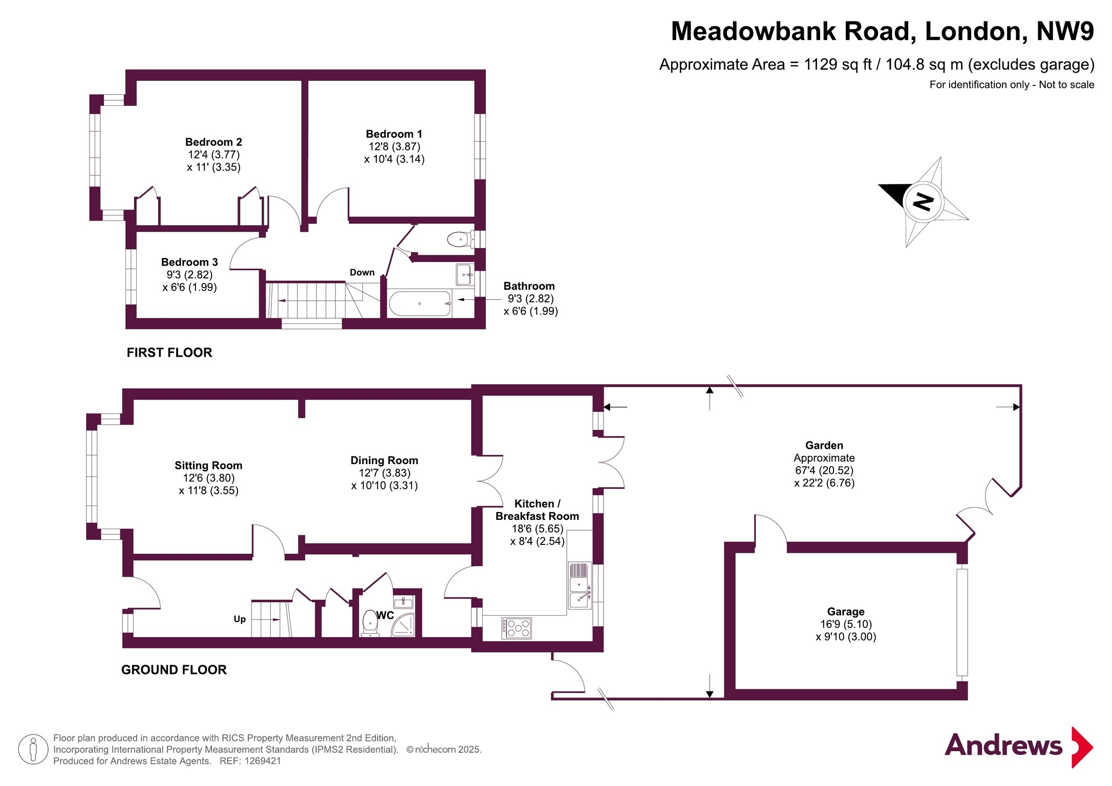 This end-of-terrace residence has been altered from its original design on the ground floor and is located just off Church Lane, favourably located for families being within less than quarter of a mile of local shopping amenities, bus routes and the well-regarded Fryent Primary School. The property is presented in good decorative order with a neutral colour scheme and features a combination of wood laminate flooring and tiled flooring. Further attributes to this home is that it comes with off street parking facilities to the front garden for two vehicles and has a garage sited in the rear garden with access via a service road. The front door opens onto the entrance hallway which gives entry into an inner lobby/utility area where the ground floor shower room is located along with plumbing for a washing machine with a door leading into the kitchen/breakfast room. Entry into the through lounge is also off the hallway and is currently arranged to offer a front aspect lounge which leads through to a dining room area. From here there are double doors opening onto a good-sized kitchen/breakfast room measuring 18'6" x 8'4" with one section having the kitchen area which overlooks the rear garden and delivers plenty of cupboard and drawer storage with an inset gas hob, fitted electric oven and plumbing for a tumble dryer and the other section providing a versatile space which is currently used as a seating area. This area also has double glazed double doors opening out to the rear garden which presents a pleasing outdoor space wth a paved patio area to enjoy summer bar-be-ques with friends and family and a lawn area for children to play. There is also a door into the garage, double gates at the rear and a side gate leading to the front garden. The first floor features a stained glass window on the landing as well as loft access and accommodates two double bedrooms with the front aspect bedroom furnished with fitted wardrobes and cupboards, a single bedroom and the family bathroom with a separate w.c. There is a wide variety of local amenities surrounding Meadowbank Road (all quarter of a mile to a mile radius) such as various eateries, medical/dental practices and places of worship together with Silver Jubilee Park, West Hendon Playing Fields with leisure and sporting facilities as well as a children's playground and the open fields at Fryent Country Park with rambling pathways, scenic views and a horse stable. Wembley Park is within two miles of the property where the London Designer Outlet can be found housing a vast range of High Street shops, restaurants, children’s playground and its own cinema complex together with a number of local shopping amenities in addition to Brent Civic Centre, Boxpark, Wembley Stadium and SSE Arena. Wembley Park Tube Station runs on the Metropolitan and Jubilee Lines and there is the option of Kingsbury’s Jubilee Line which is within a mile at Kingsbury Town's Centre, both connecting you to Central London in 20-25 minutes.