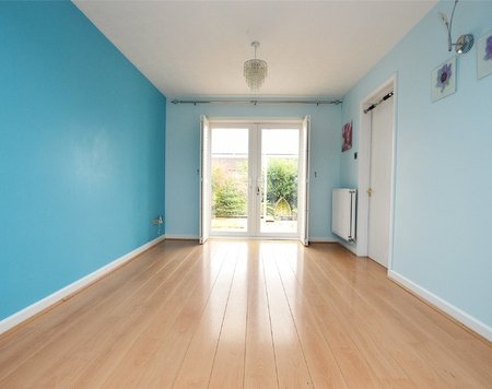 Step inside and the entrance hall incorporates a separate WC and then opens into the main reception area. The living and dining room are open plan with a feature fireplace in the living room and French doors in the dining room opening onto a sheltered patio. The kitchen with fitted units and space for appliances is accessed from the dining room. The inner hall offers access to a double bedroom with built in wardrobes.