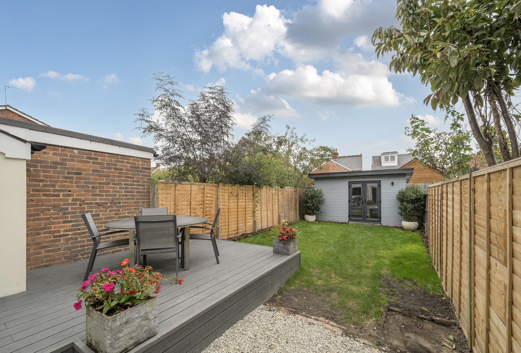 The main entrance is to the side of the property, then you enter a small hall way that gives access to the front reception room with wood flooring and feature fire place. It also gives access to your dining room and open plan modern fitted kitchen and a downstairs w.c. Once upstairs to your landing, you have two double bedrooms and a modern four piece bathroom, plus a second staircase that take you to the converted loft room which is currently being used as the third double bedroom. The rear garden has been re-designed and has a wonderful, studio / home office which has light and electric connected on a separate consumer unit.