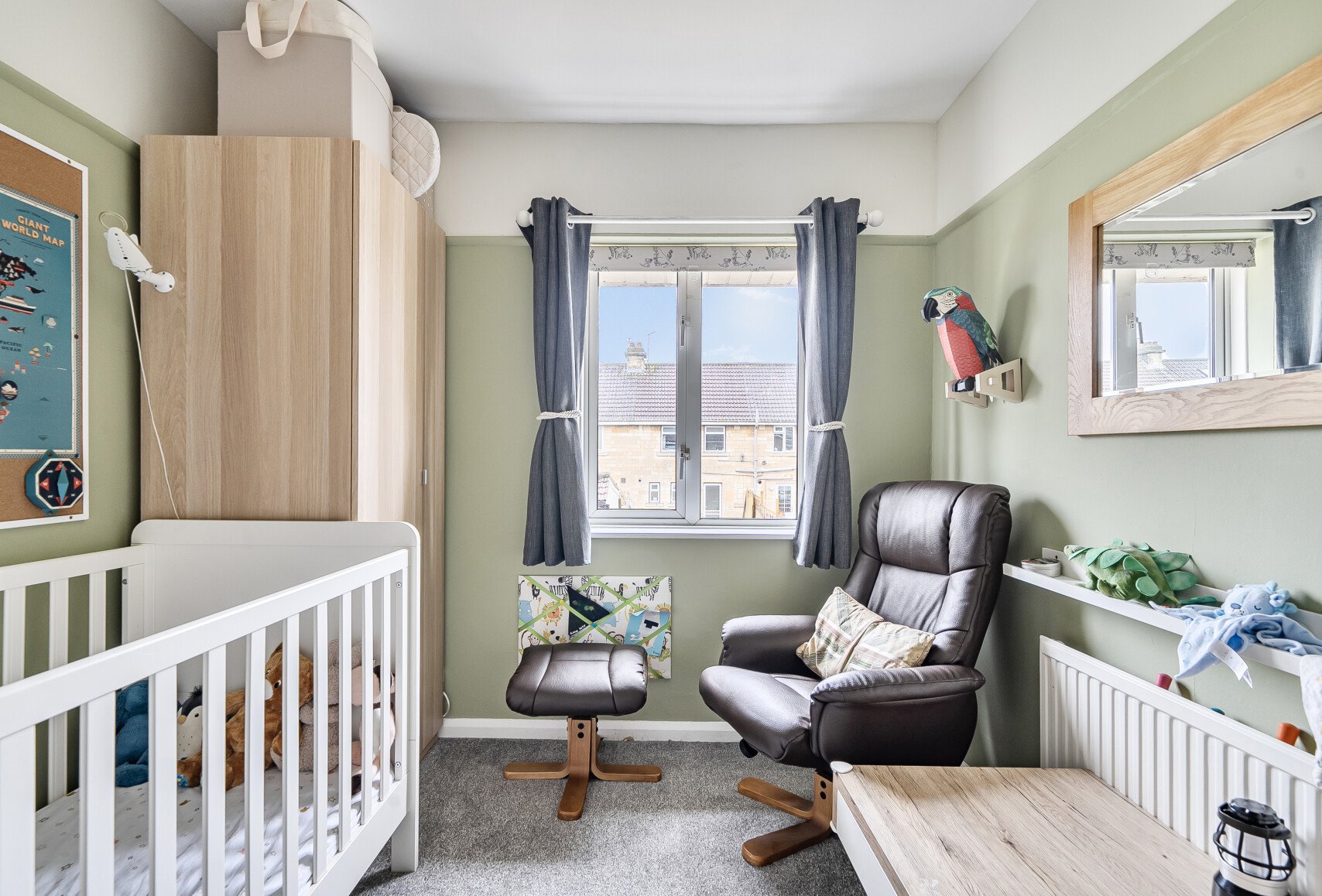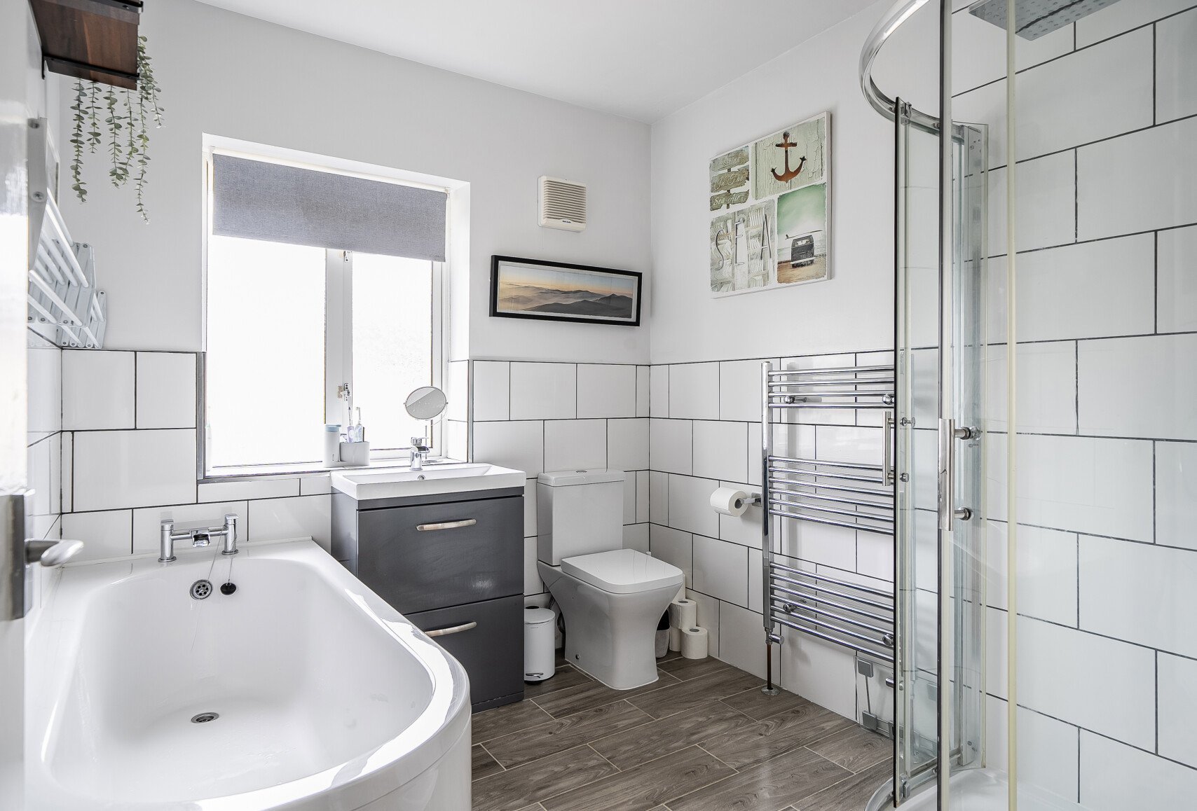 Upstairs, there is a good double bedroom with space for generous storage, a second bedroom featuring a charming decorative fireplace, and a family bathroom. The bathroom is modern and well presented, fitted with a three-piece suit and a separate shower, completing the first floor accommodation.