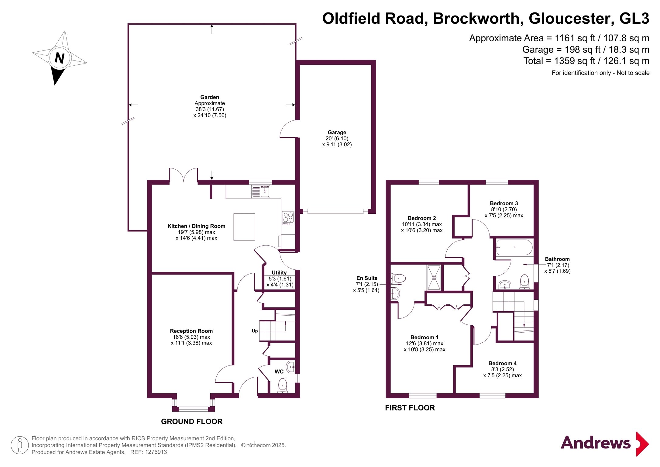 A four bedroom detached home built by "David Wilson Homes" located in a small development on the edge of Brockworth. The property offers downstairs a lounge with feature bay, cloakroom, utility room and kitchen/diner with French doors to the garden. Upstairs are four bedrooms, en-suite and family bathroom. Outside is a landscaped terraced rear garden and driveway leading to the garage providing parking for two cars. Located within half a mile is Castle Hill Primary School, there is also a local park, AONB and walks up to Coopers Hill nearby. Brockworth benefits from shops (Tesco Complex), fitness centres, and pubs. There is also access to Gloucester, Cheltenham, local Gloucester Business Park and further afield by the M5.