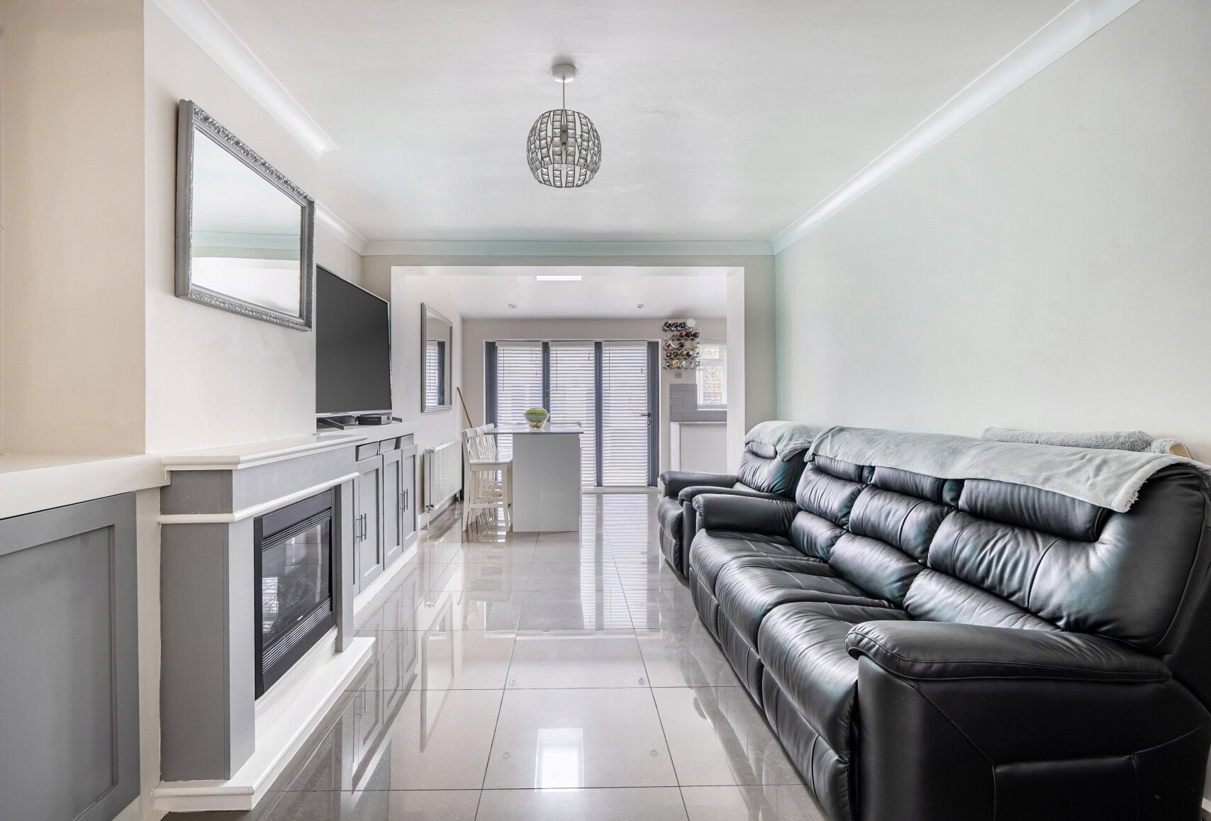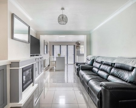 This attractive three double bedroom mid-terraced house offers flexible and well-designed accommodation, ideal for modern family living. On the ground floor is a separate reception room, a convenient cloakroom, and a bright open-plan sitting room with a contemporary fitted kitchen. Bi-folding doors open onto a low-maintenance rear garden, featuring a powered shed that works perfectly as a summer house, workspace, or playroom. Upstairs, the first floor provides two spacious double bedrooms, both with built-in wardrobes, and a family bathroom. The top floor hosts a fantastic main bedroom with a Juliette balcony and separate shower room. The property is completed by off-street parking to the front.