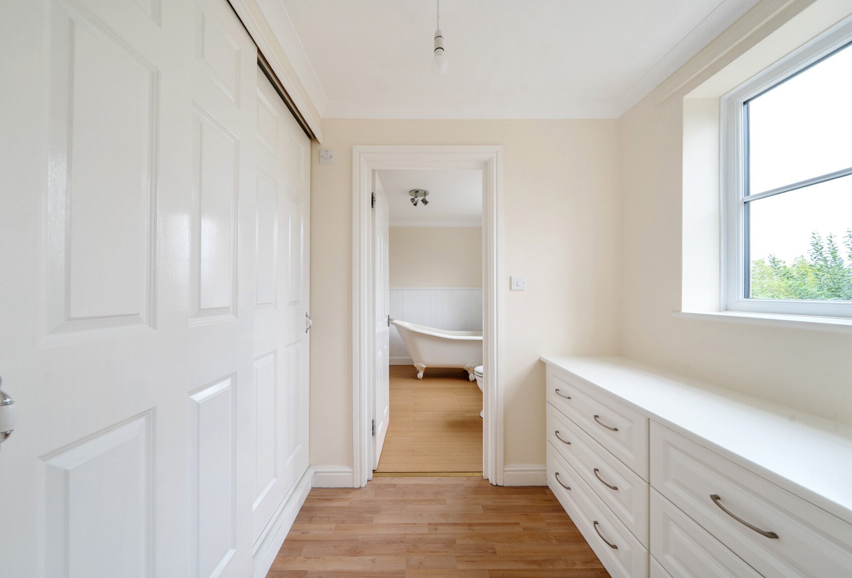Step inside to a welcoming hallway that leads to the heart of the home: a 27ft sitting room. It boasts engineered oak wood flooring, an open fireplace, and French doors opening onto the garden – perfect for cosy evenings and summer gatherings alike. A separate dining room offers space for entertaining, while the kitchen/breakfast room is ideal for everyday family life. A utility and cloakroom complete the ground floor. Upstairs, the principal bedroom is a true retreat, complete with walk-in wardrobe, dressing room, and a stylish ensuite featuring a roll-top bath. Two further bedrooms and a family bathroom make this floor perfect for children or guests. The top floor adds two more spacious bedrooms and a shower room – ideal for teenagers, a home office, or hobby space.
