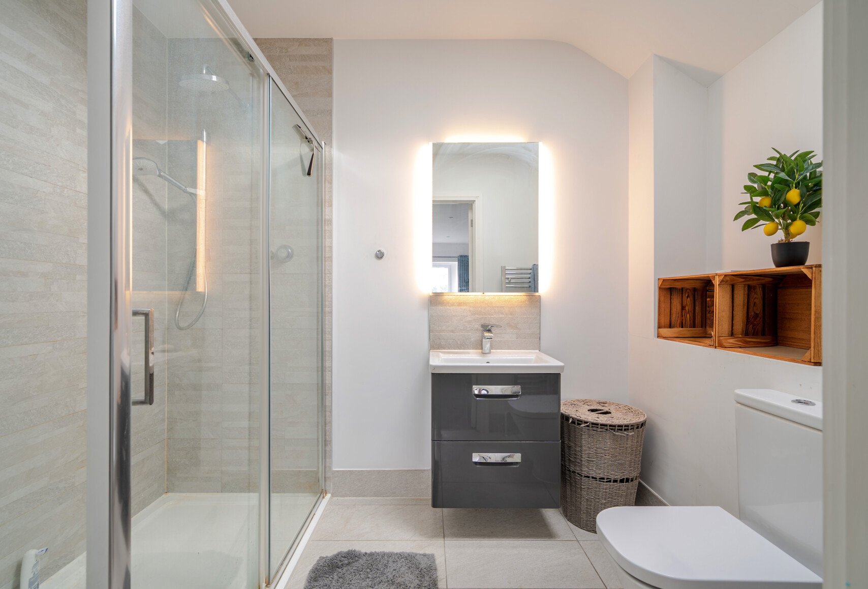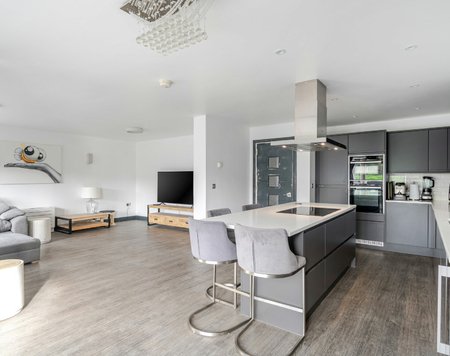 Part of an exclusive development of only five properties, the house has been finished to an exceptional standard. The heart of the home is its sleek open-plan kitchen, dining, and lounge area – a stylish, light-filled setting ideal for both family life and entertaining. Features include underfloor heating throughout the ground floor, a beautifully designed kitchen with premium Neff appliances – including the renowned slide-and-glide oven – and well-appointed bathrooms and en suites. Two of the bedrooms enjoy their own private balconies, while a double garage offers both secure parking and practical storage. To the rear, the south-facing garden provides sweeping countryside views, creating a peaceful and private retreat.