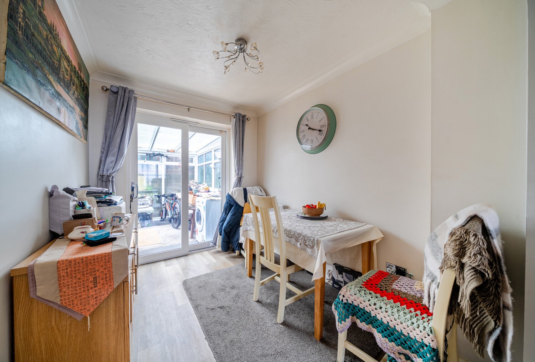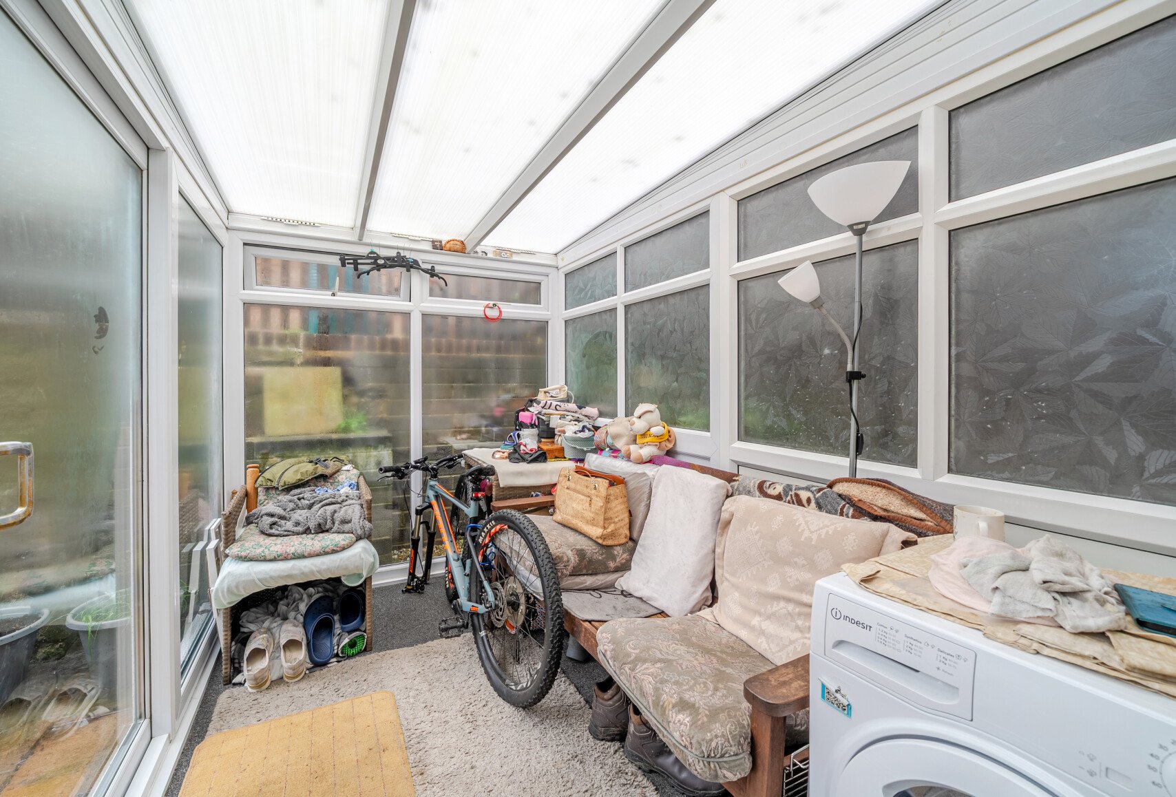The property is entered into a welcoming sitting room, providing a comfortable living space with stairs rising to the first floor. To the rear, a separate dining room enjoys a pleasant outlook and leads through to the kitchen, which is fitted with a practical range of units and work surfaces. From the dining room, doors open into a bright conservatory, creating an excellent additional reception space with direct access to the garden, ideal for both everyday use and entertaining.