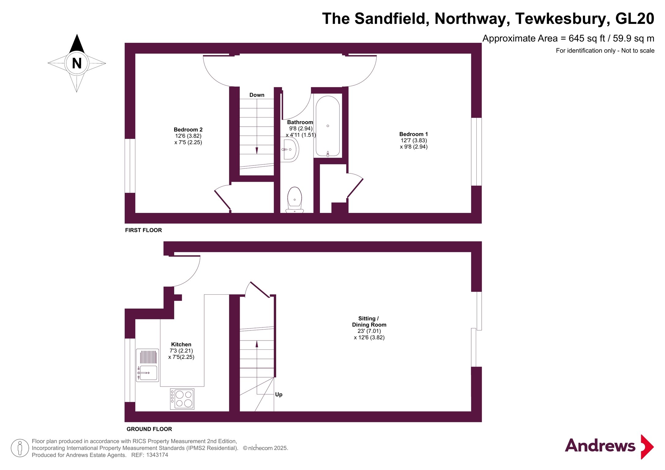 This two-bedroom mid-terrace house located in Northway. The property includes a front driveway for off-street parking and a rear garden. The ground floor consists of a living area, kitchen, and access to the rear outdoor space. Upstairs, there are two bedrooms and a bathroom. The house is positioned in a residential area with access to local amenities and transport links.