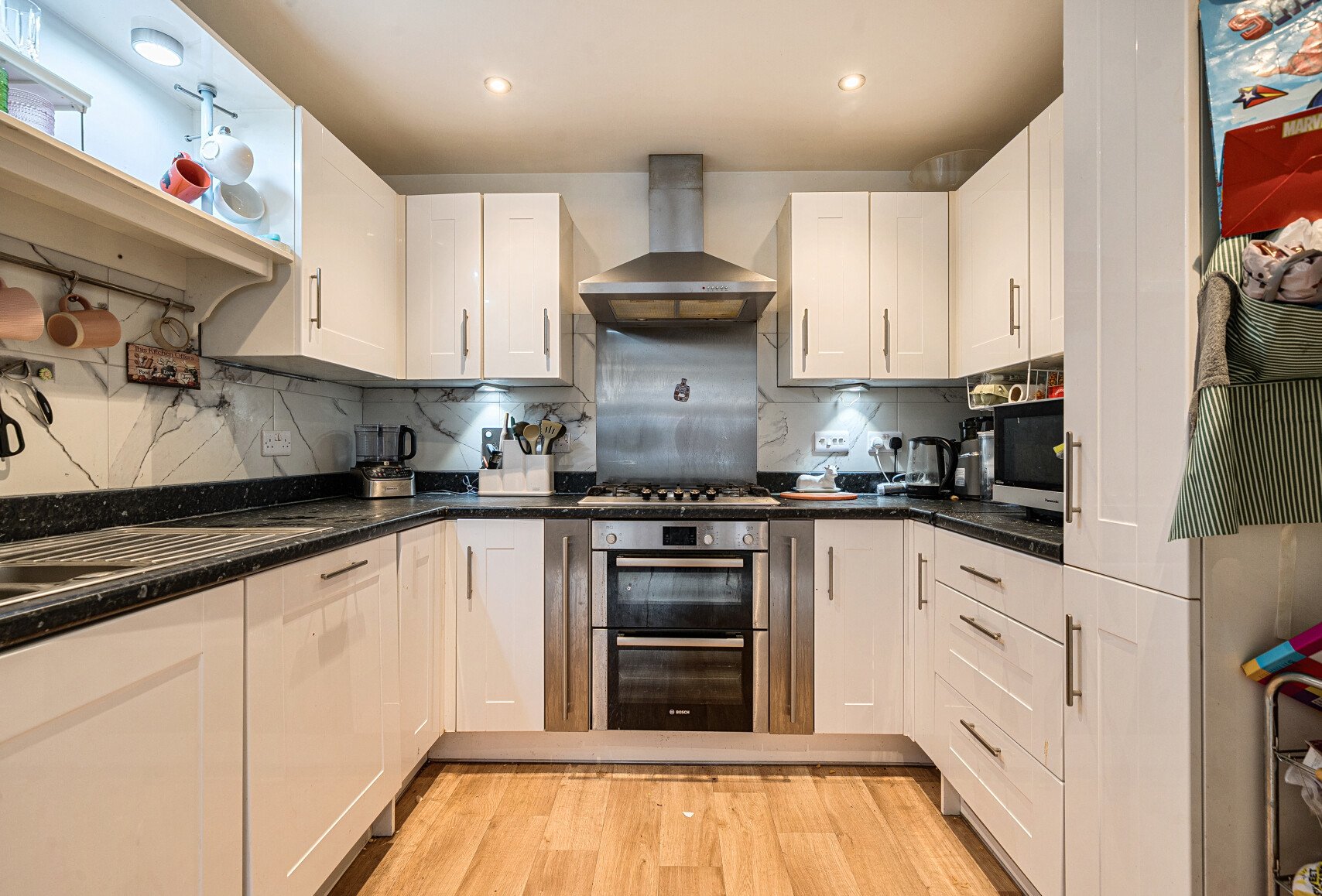On the first floor, you’ll find three well-proportioned bedrooms and a stylish family bathroom, while the top floor is devoted to the master suite, a generous double bedroom with fitted storage and an en-suite shower room offering both comfort and privacy.