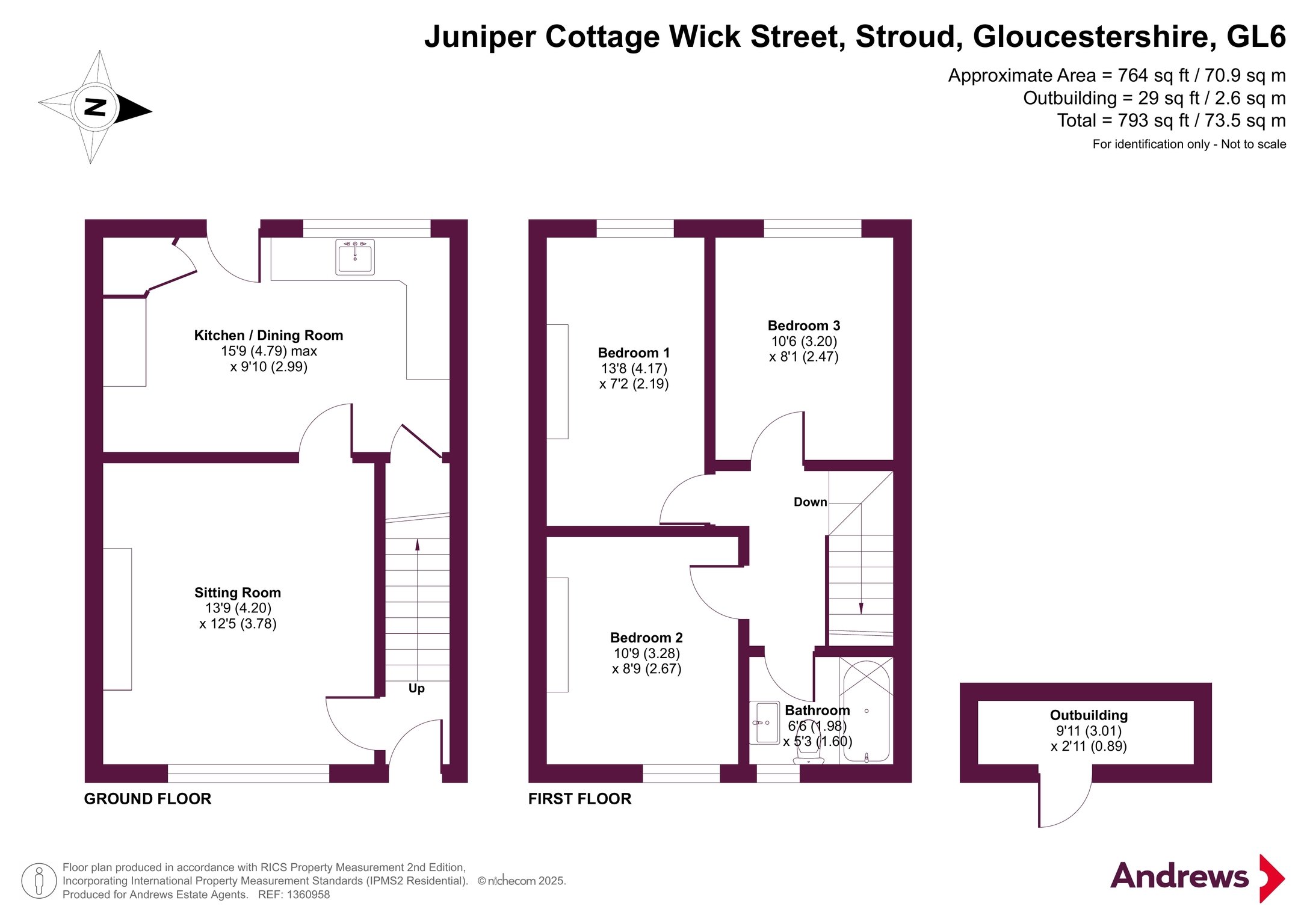 The ground floor comprises a bright traditional country kitchen/dining room and a cosy sitting room at the rear, which features a stable door opening directly onto the garden. Upstairs, three bedrooms and a family bathroom provide flexible, comfortable accommodation, while a good-sized loft with two roof windows is filled with natural light. Natural wood floors and windows throughout add warmth and timeless appeal. Outside, the garden is planted with fruit, vegetables, and naturalised flowers, creating a colourful haven for wildlife throughout the year. A rear footpath provides convenient access behind the terrace, and an outside store offers extra storage. With scenic walks on your doorstep and Stroud’s amenities just a short drive away, this charming cottage is a peaceful, character-filled home perfectly connected to the beauty of the Cotswolds. Nestled in the charming Cotswold village of Wick Street, 2 Juniper Cottage enjoys a peaceful rural setting while being just moments from the vibrant market town of Stroud. Surrounded by rolling countryside, scenic walks, and breathtaking views, the area offers the perfect balance of countryside living with convenient access to modern amenities. Stroud’s award-winning farmers’ market, independent shops, artisan cafés, and creative community make it one of Gloucestershire’s most desirable locations. Excellent local schools, nearby nature reserves, and easy transport links to Cheltenham, Cirencester, and London Paddington via direct rail connections enhance the area’s appeal for both families and professionals seeking a blend of tranquility and connectivity.