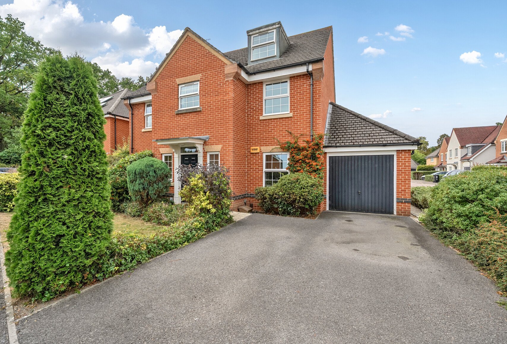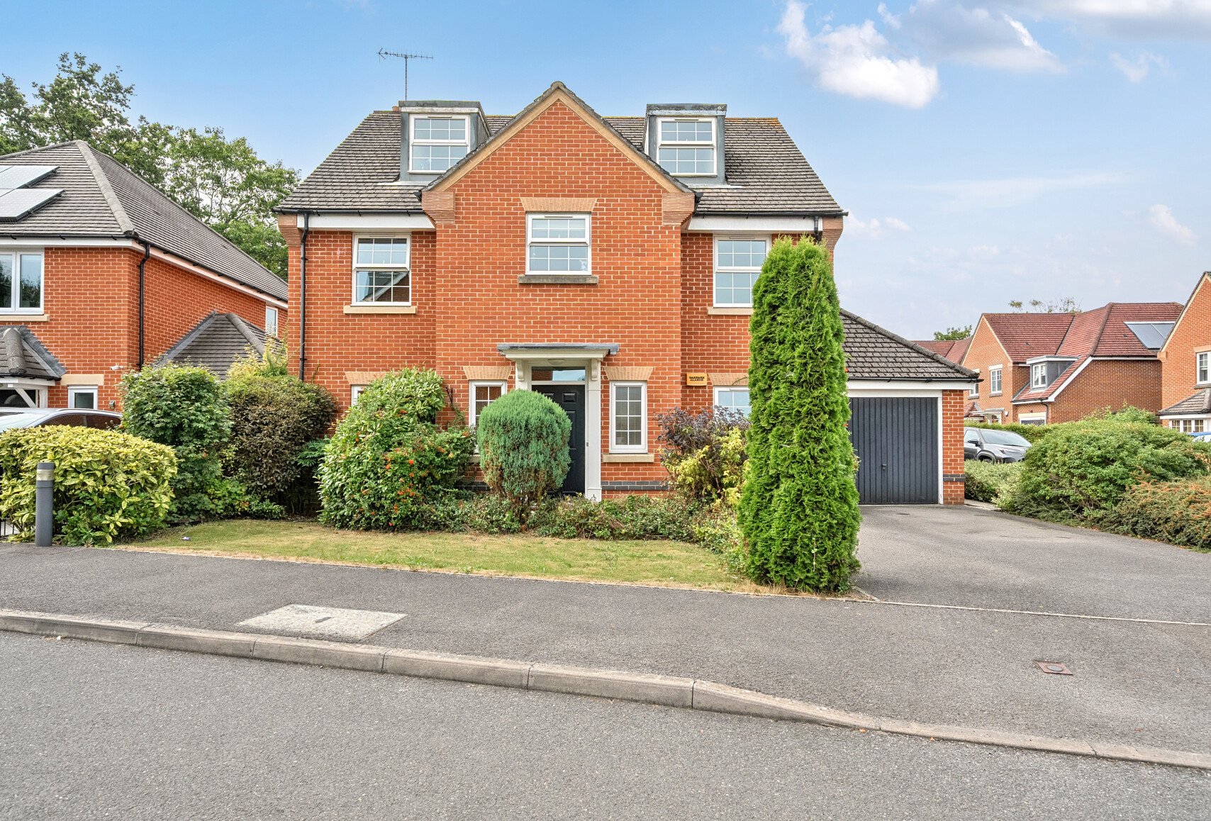 Ideal for growing families seeking both comfort and practicality. Step into a welcoming entrance hallway leading to a spacious sitting room with plenty of natural light with windows and doors to the rear garden, perfect for relaxation and entertaining. The separate formal dining room at the front of the property provides a great space for family meals and dinner parties. The heart of the home is the modern kitchen/breakfast room, fitted with sleek units and integrated appliances, with direct access to the utility room and rear garden. A guest WC completes this level. The first floor offers four generous bedrooms, including a luxurious master bedroom suite with fitted wardrobes and a stylish en-suite bathroom. Bedroom 2 also benefits from an en-suite shower room, while the remaining bedrooms are served by a contemporary family bathroom. On the top floor, you’ll find two further double bedrooms and an additional shower room – perfect for teenagers, guests, or even a dedicated home office space. Additional Features Garage and driveway parking Private, part-walled rear garden Modern fixtures and fittings throughout Ex-show home finish with thoughtful design details