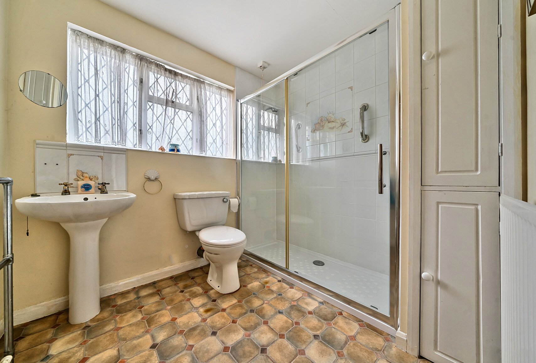 To the first floor are three bedrooms, including a particularly spacious 15’11” principal bedroom and a further comfortable double bedroom. A fourth bedroom/study provides flexibility for home working or nursery space. A family shower room serves this level.