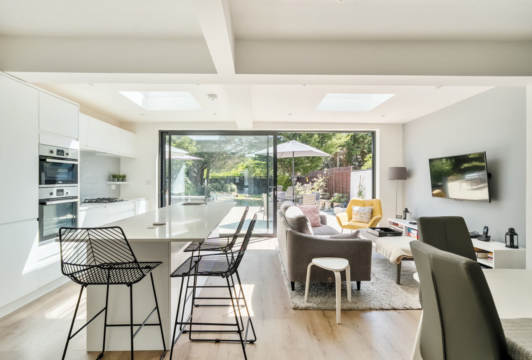 Stunning extended four bedroom family home, boasting a magnificent kitchen/dining/family room, looking out onto an extensive rear garden. Freehold.