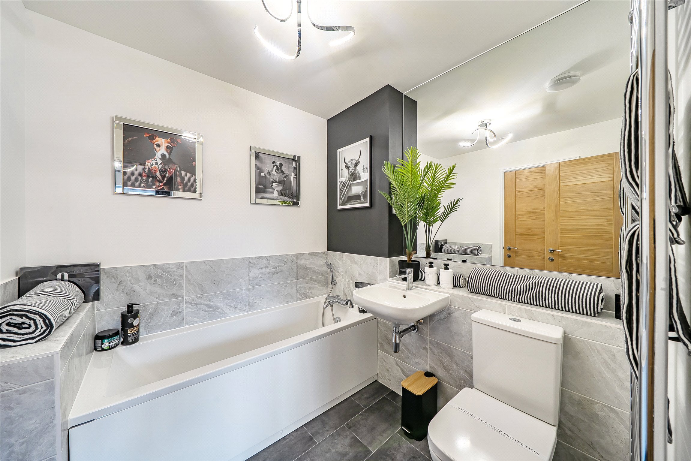 Your new home comes with a 10 year warranty, finished to a high specification with Oak internal doors with chrome handles, feature LED stair lights, Oak stair handrails, contemporary sanitaryware with wall hung basins and mono taps together with spacious quality kitchens with soft close doors, oven, induction hob and hood together with integrated fridge/freezer, all as standard.
