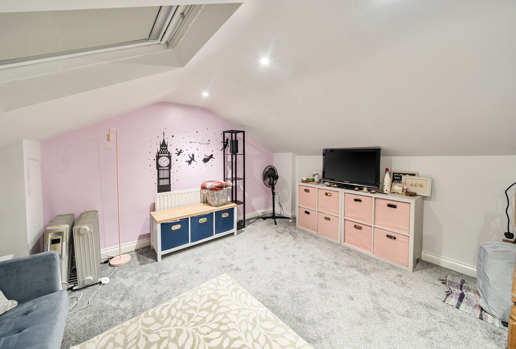 The apartment features a comfortable double bedroom, ideal for restful nights, and the converted loft offers versatile space that can serve as a second bedroom or a home office.