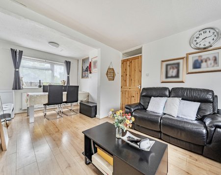 Upon entering, you’re welcomed by a hallway with a useful storage room to the right. To the left, a spacious dual-aspect sitting and dining room features elegant hardwood flooring and provides a sociable, open-plan layout perfect for entertaining or relaxing. To the rear, the galley-style kitchen is fitted with a range of base and wall units, offering ample storage and space for under-counter appliances.