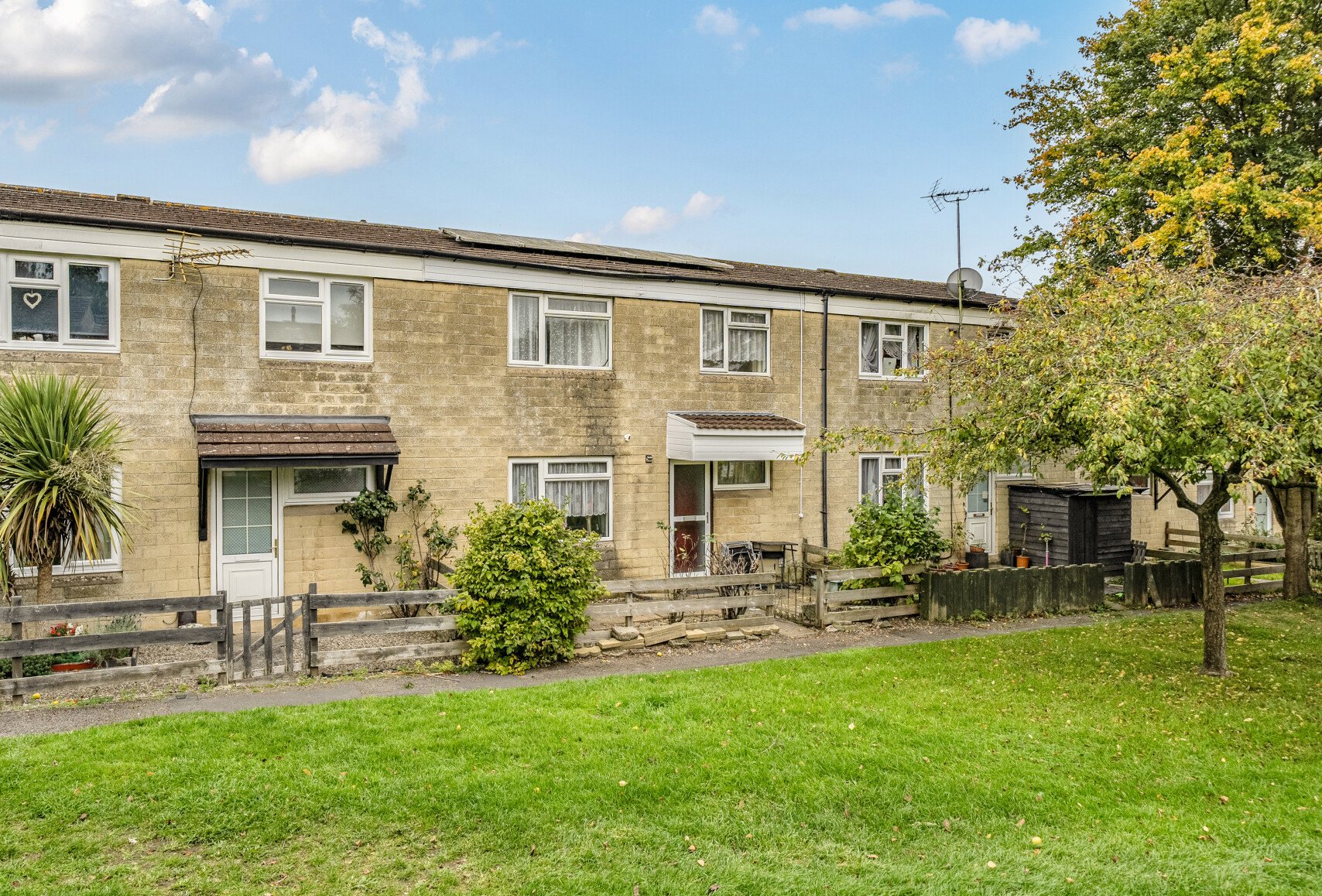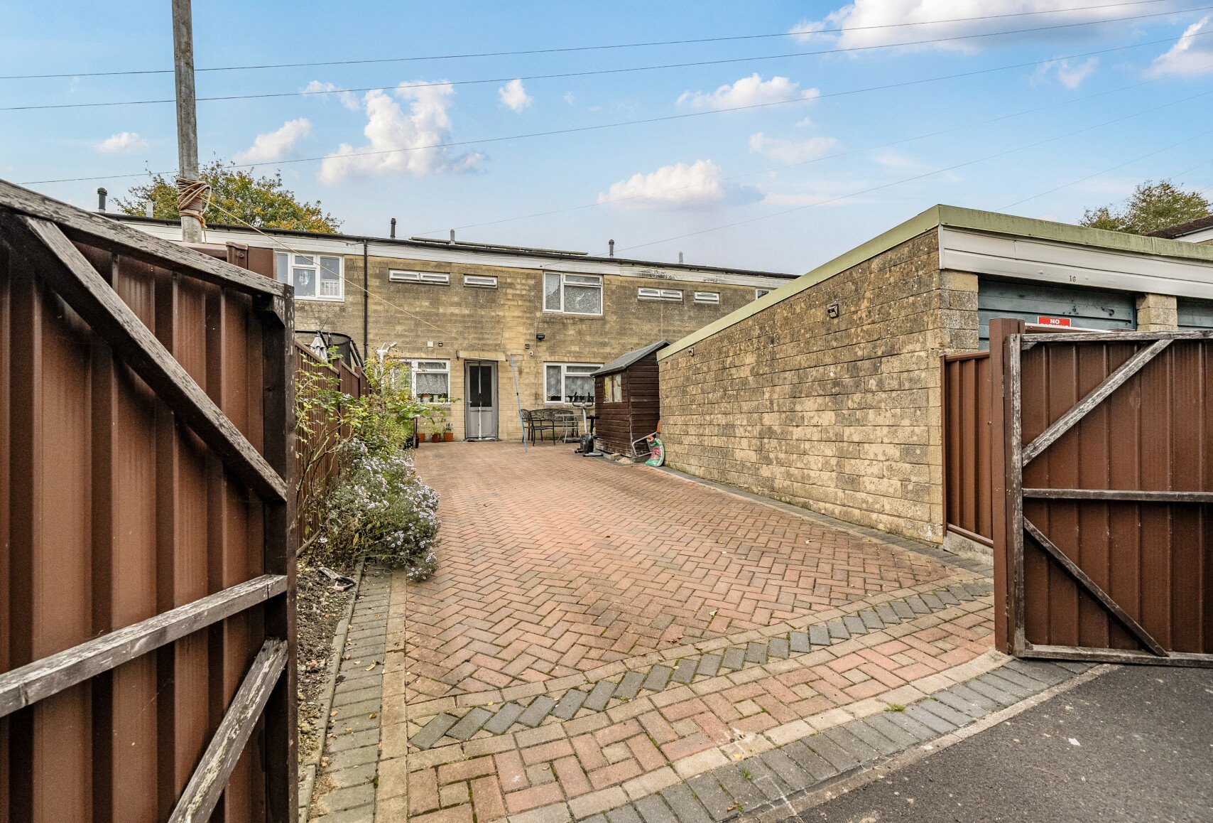 Externally, the property benefits from both front and rear gardens. To the rear, wooden gates open to a private garden area that doubles as off-street parking for up to three vehicles, bordered by a charming flower bed. The home also benefits from solar panels, adding energy efficiency and long-term savings.