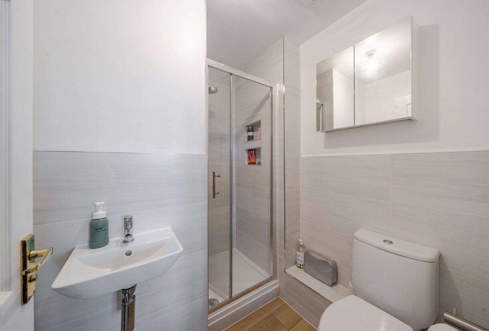 Also on this floor are bedroom three and the family bathroom, which includes a shower over the bath, low-level WC, and sink.