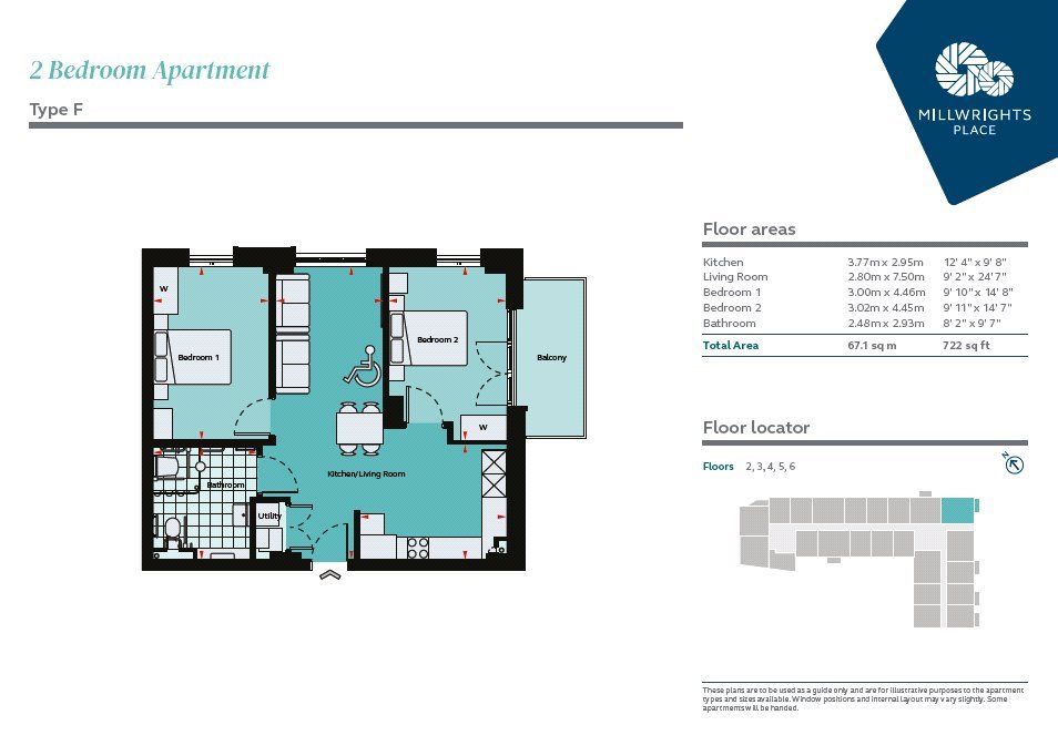 Andrews have been instructed to market this beautiful brand new accessible two-bedroom apartment, located in the heart of Bristol. Partnered with Abode Impact, accessible property specialists, and their client Grainger plc, one of the UK’s largest and oldest landlords to offer you a brand-new collection of stylish adapted apartments. These apartments include an allocated accessible parking space, balconies, shared terraces to socialize with other residents as well as a gym and other facilities. The apartments are flooded with natural light from ceiling to floor windows and have been carefully created to maximize internal space and ease of use. The building is located in the heart of Bristol, in a riverside setting with a variety of shops and cafes within the development. Temple Meads train station is just 0.6 miles from Millwrights Place a few minutes away, giving access to London and the UK. Despite the city centre location, the building also has wheelchair accessible parking included in the rent. Council Tax Band : To be confirmed, due to a brand new building